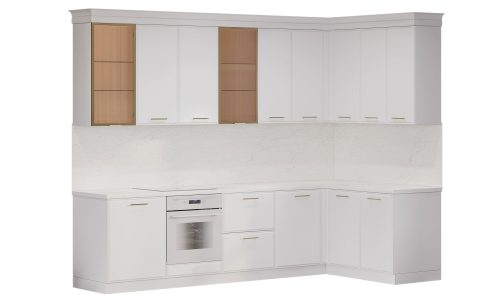 Кухня Виктория угловая 3×1.55 м. (белый/золото/дуб)
