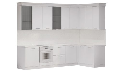 Кухня Виктория угловая 3×1.55 м. (белый/серебро/мрамор)
