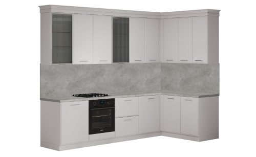 Кухня Виктория угловая 3×1.55 м. (серый кашемир/серебро/цемент)