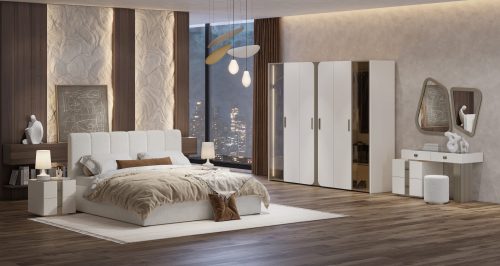 В доме, спальня является уголком тишины и покоя. Для её обустройства покупают мебель спокойных тонов подбирая кровать, шкаф, комод, прикроватные тумбочки под дизайн комнаты или сразу устанавливая набор в едином стиле.