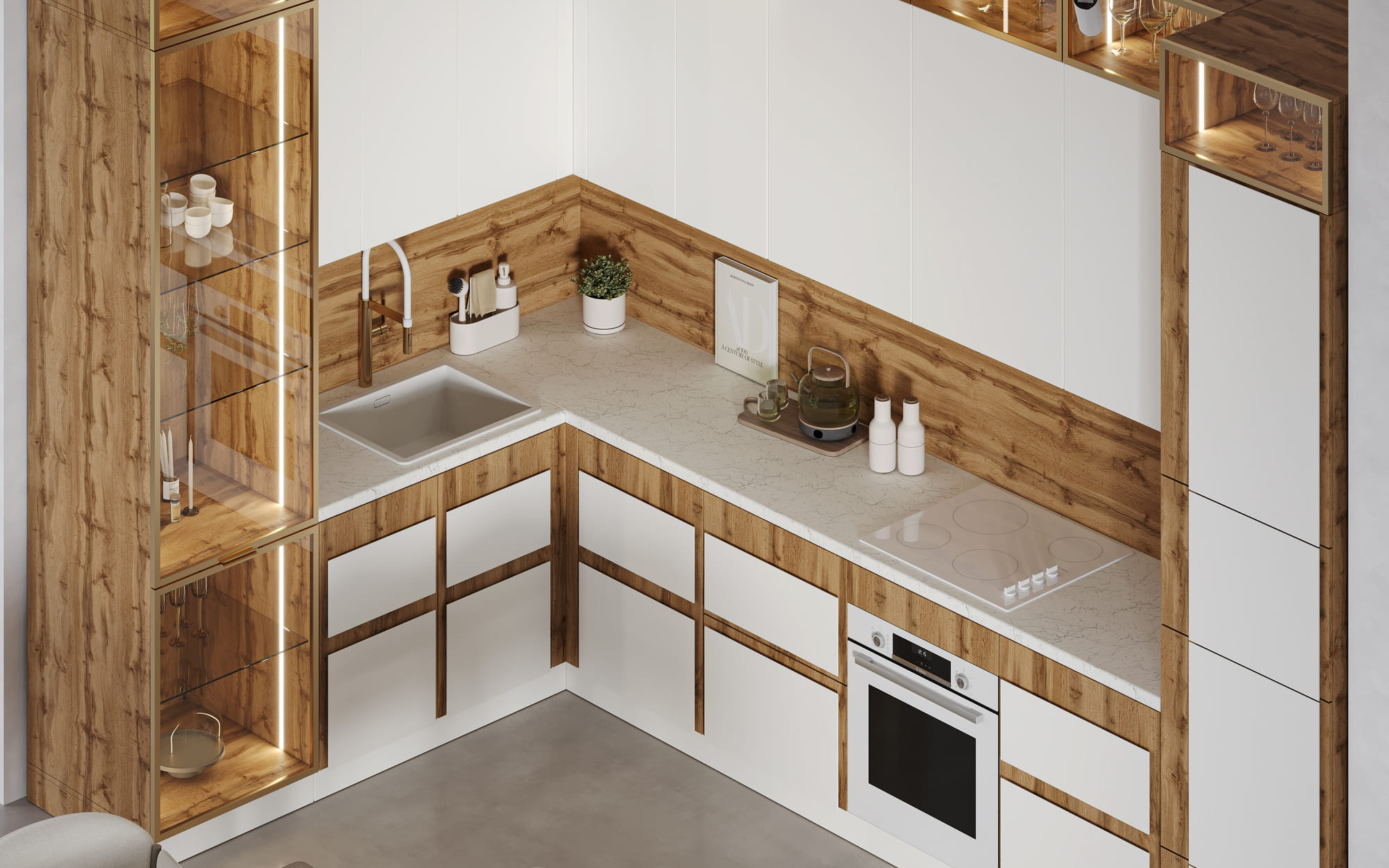 - Шкаф угловой со стеклянным фасадом в алюминиевой рамке — 800×400(Ш), фасад 400(Ш) — 1 шт.