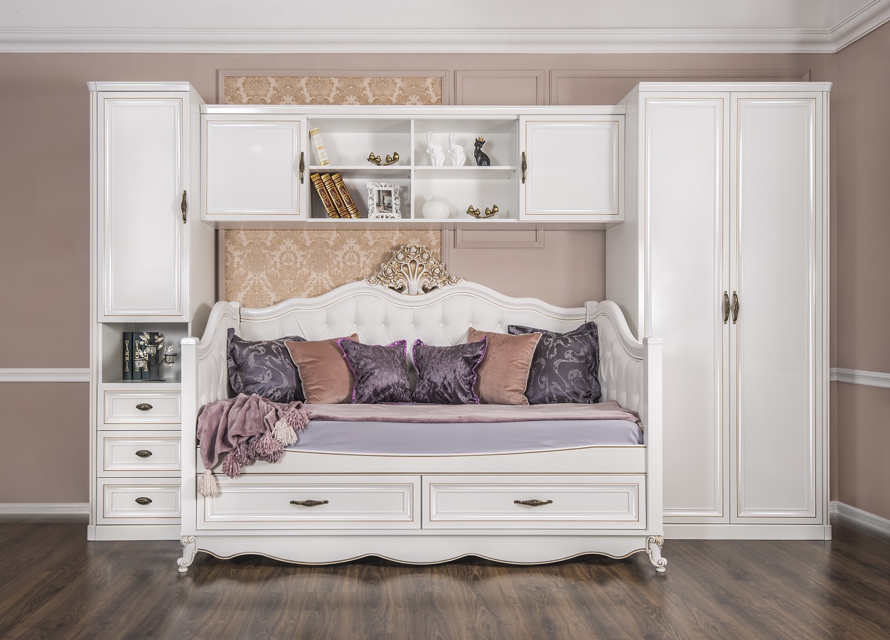 Диван кровать (90х190) Натали (белый глянец)