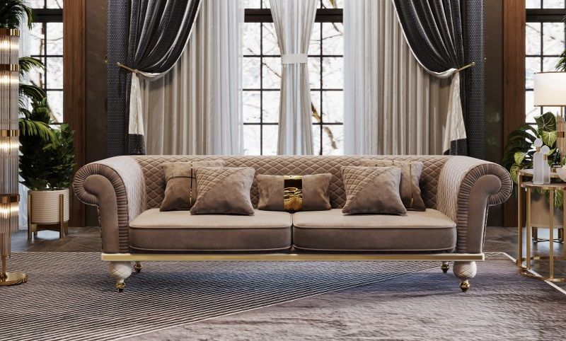 Диван трёхместный Прадо (крем/велюр серо-бежевый)
