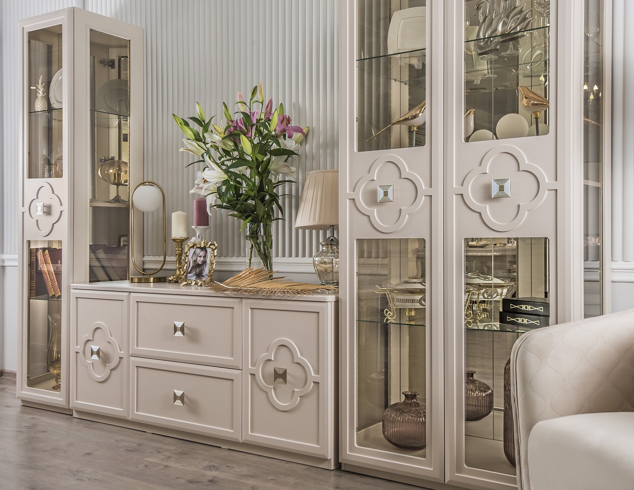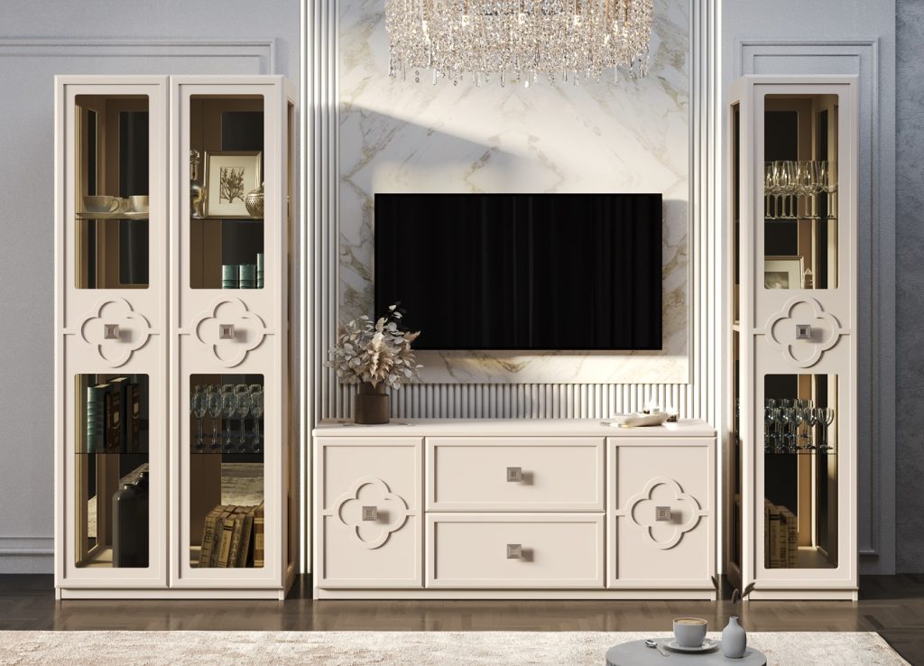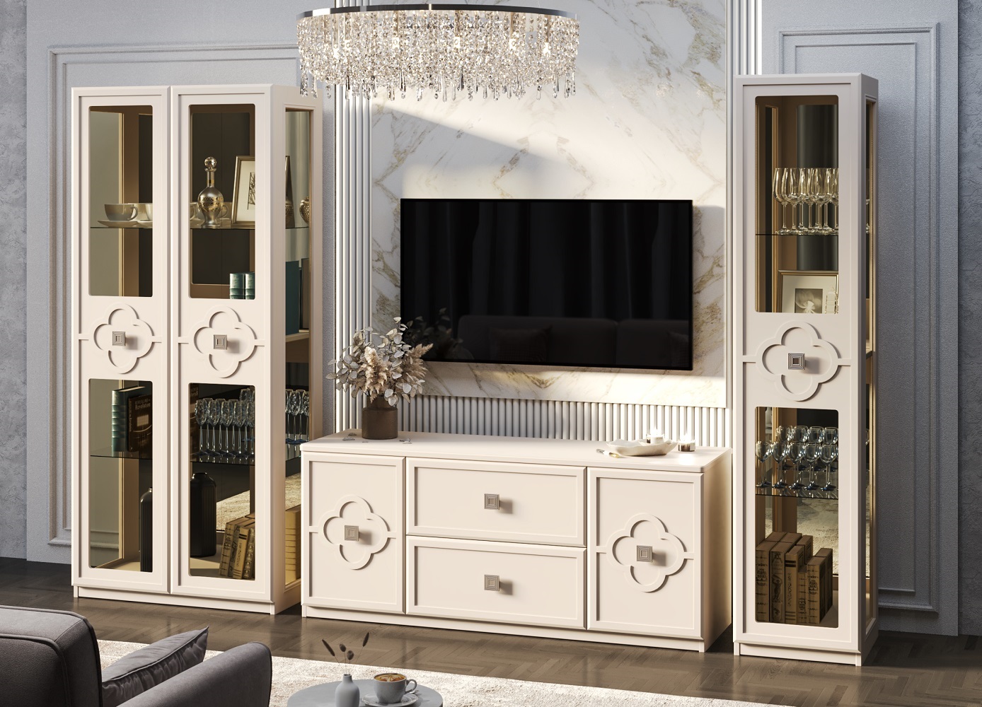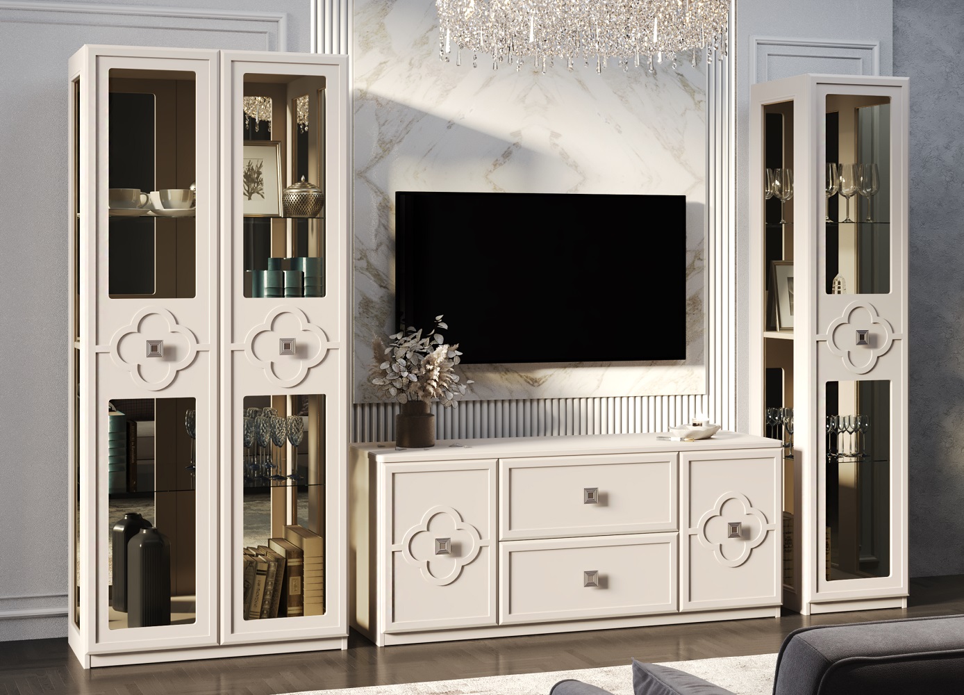 Гостиная Фелисия (витрина 1 дв. + витрина 2 дв. + тумба ТВ) бежевый