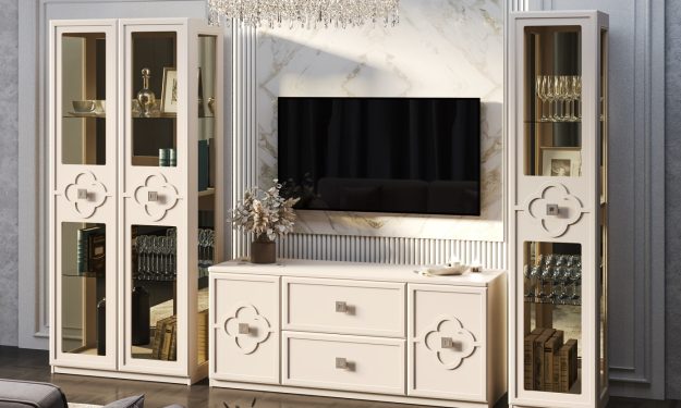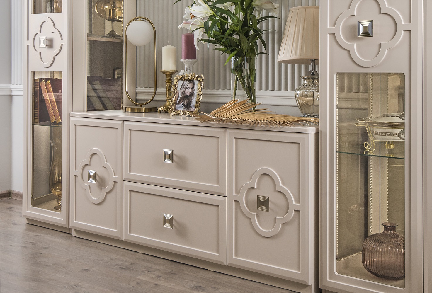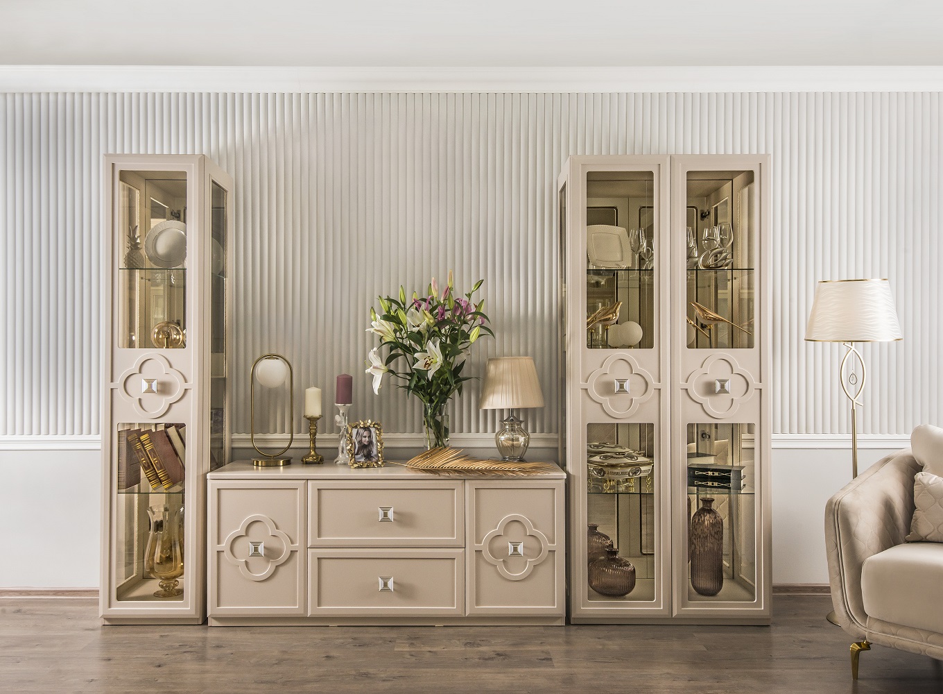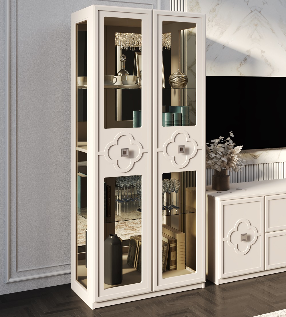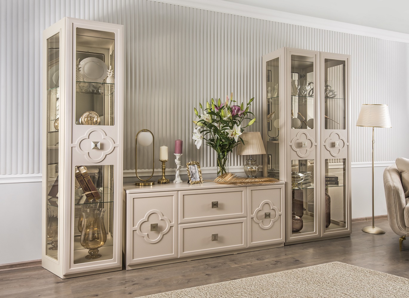 Гостиная Фелисия (витрина 1 дв. + витрина 2 дв. + тумба ТВ) бежевый