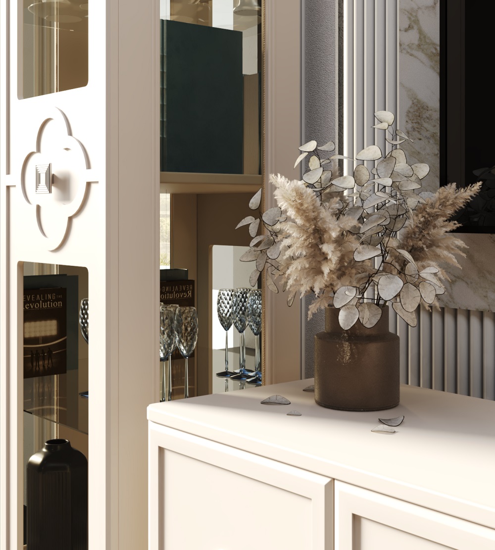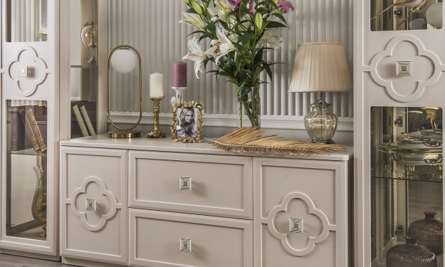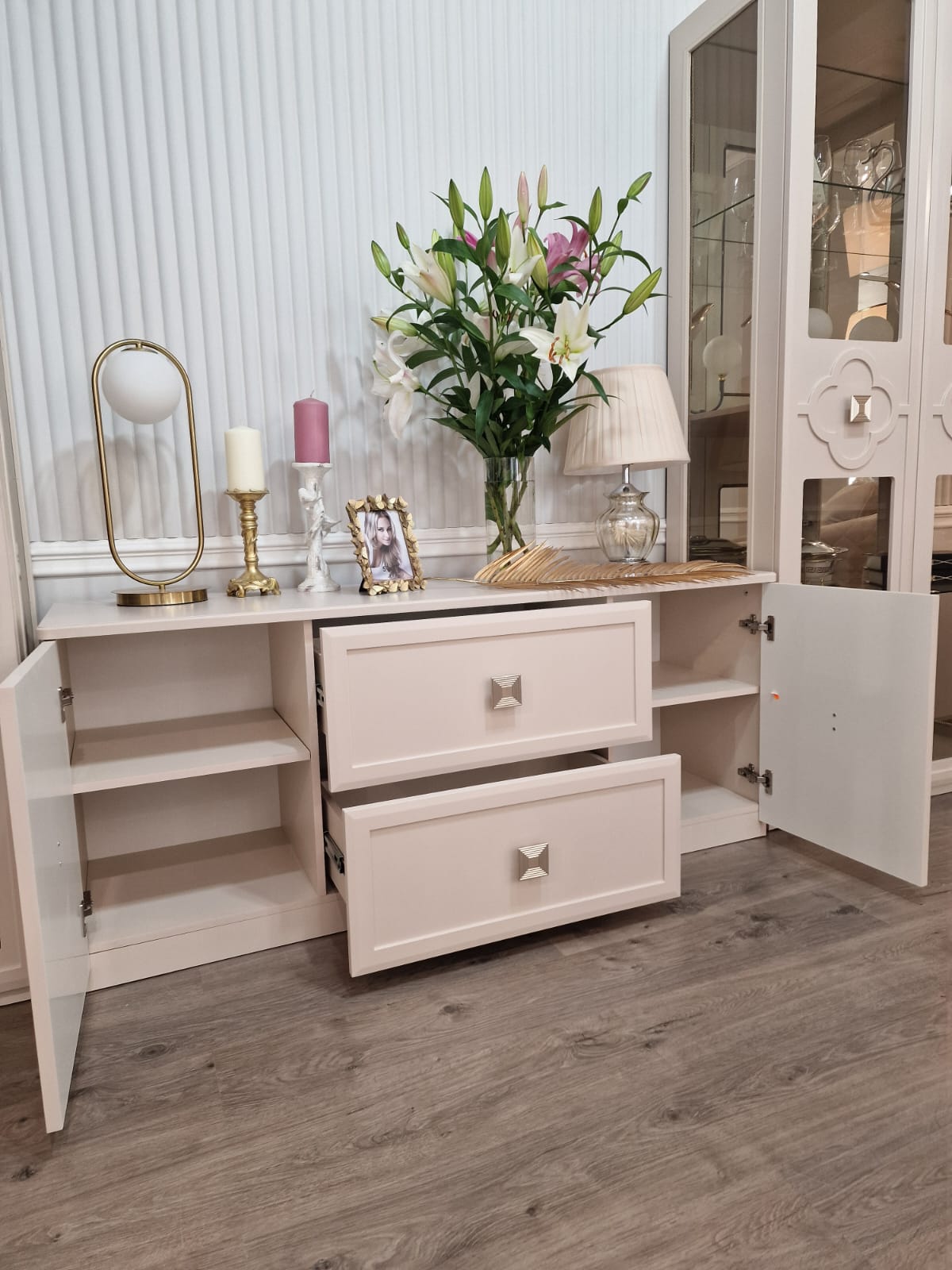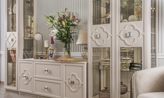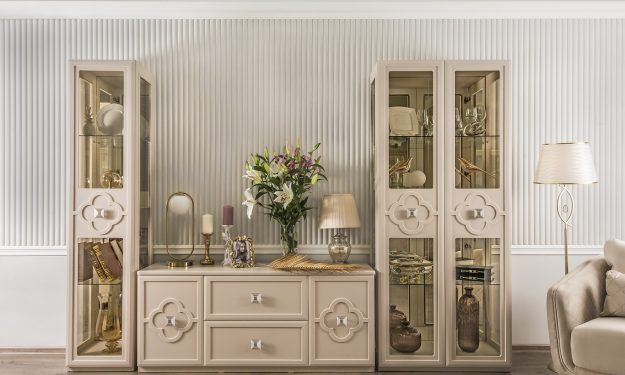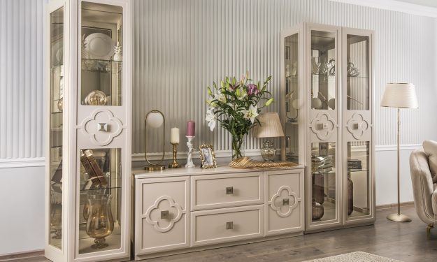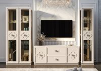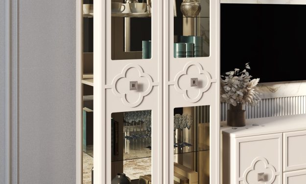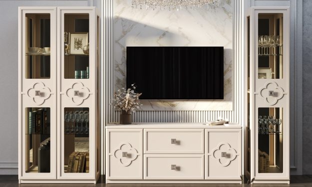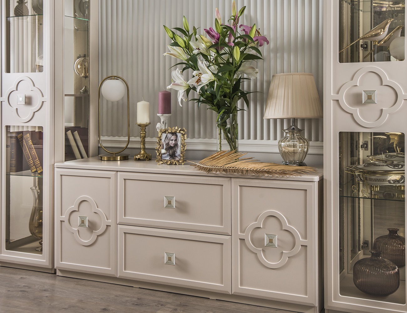 Гостиная Фелисия (витрина 1 дв. + витрина 2 дв. + тумба ТВ) бежевый