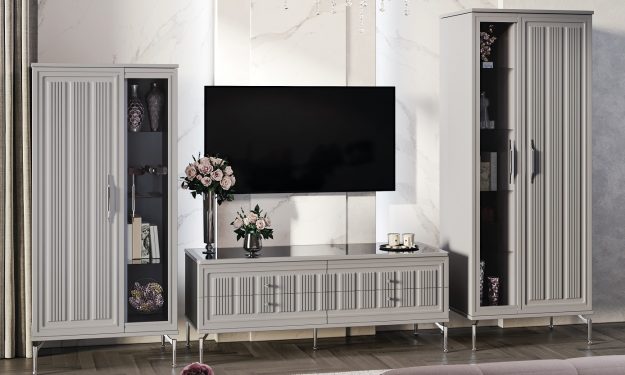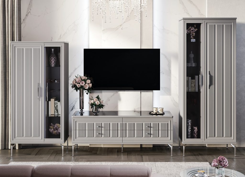 Гостиная Замира (витрина 2 дв. + витрина 2 дв. + тумба ТВ) серый