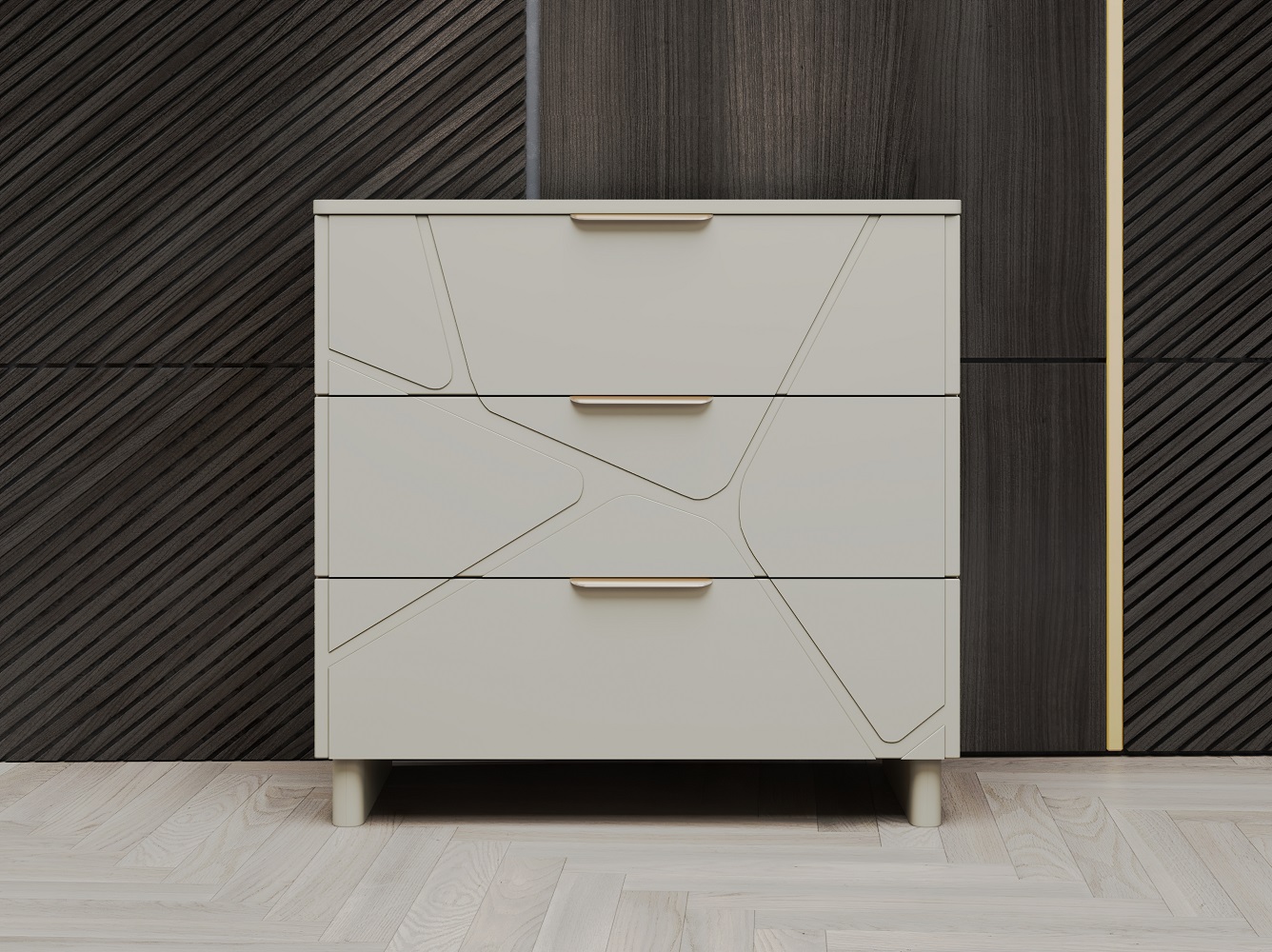 Комод с 3-мя ящиками Лейла — это воплощение утонченной роскоши и безупречного вкуса, где каждая деталь продумана до совершенства. Гармония форм и функций, характерная стилю арт-деко, проявляется в каждом элементе дизайна.