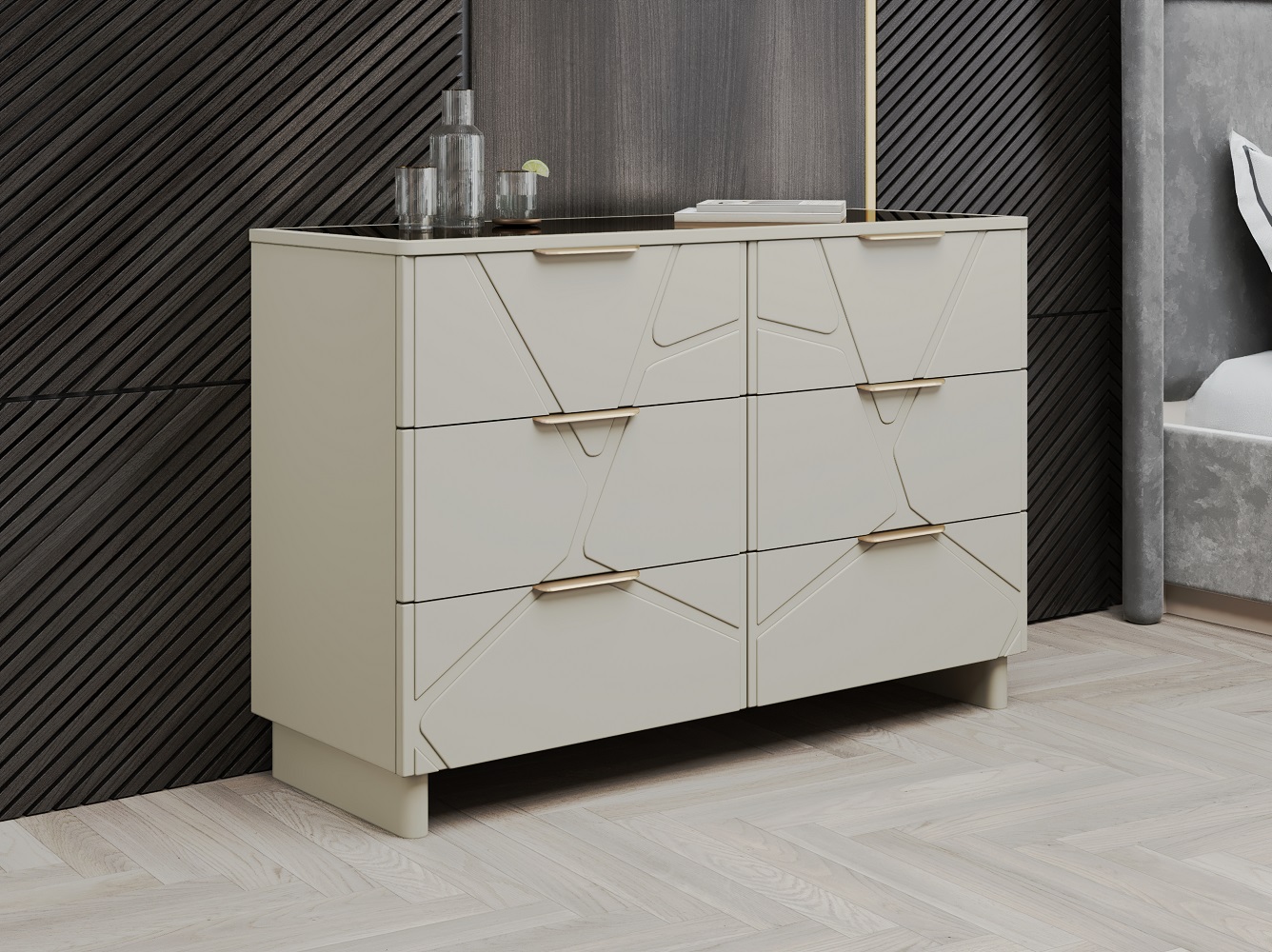 Комод с 6-ю ящиками Лейла — это воплощение утонченной роскоши и безупречного вкуса, где каждая деталь продумана до совершенства. Гармония форм и функций, характерная стилю арт-деко, проявляется в каждом элементе дизайна.