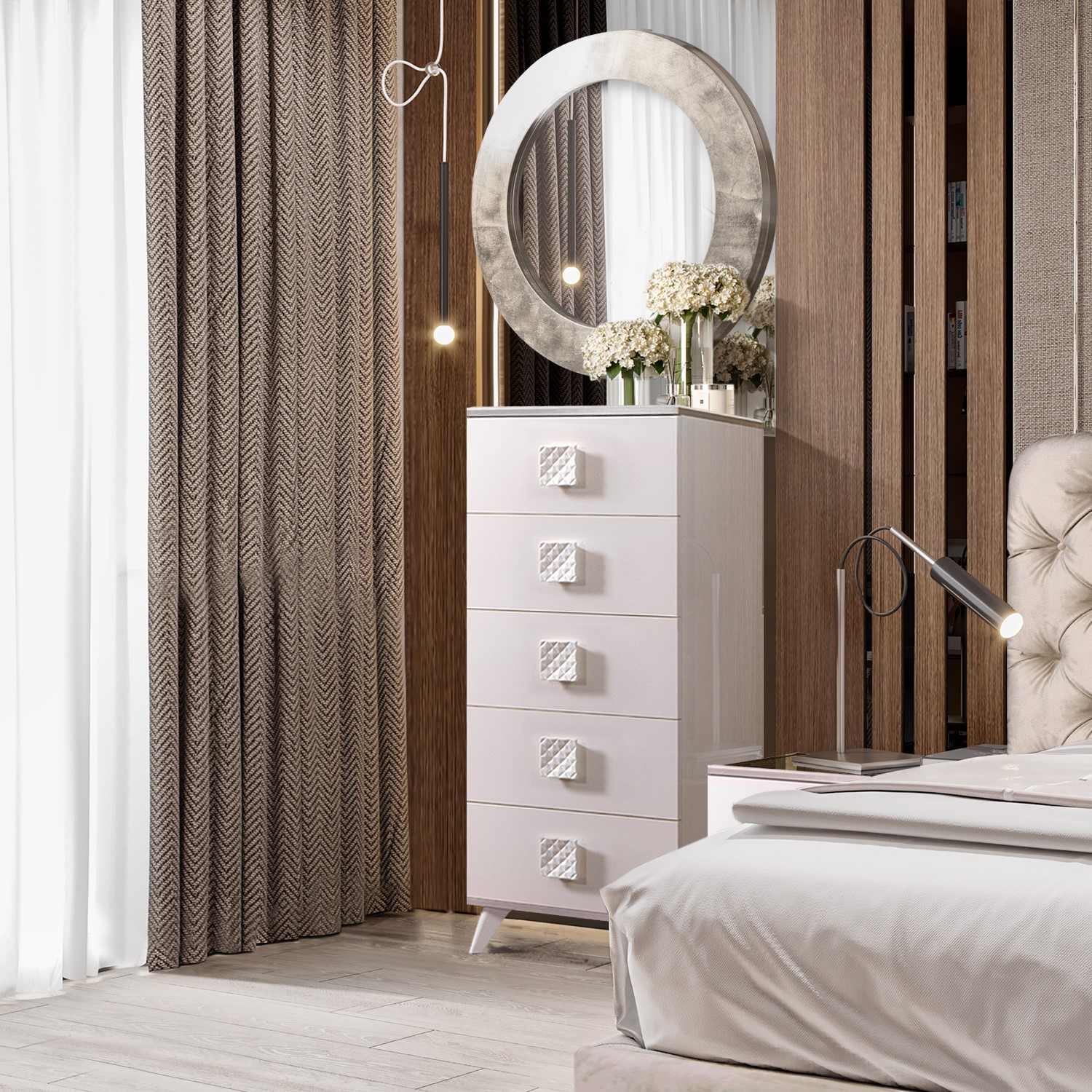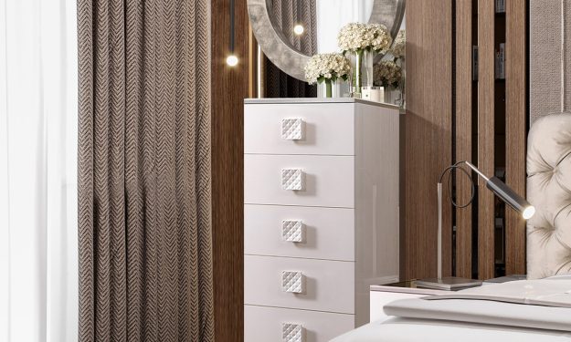 Комод узкий Diora (слоновая кость/серебро)