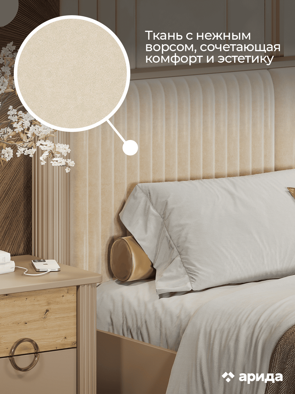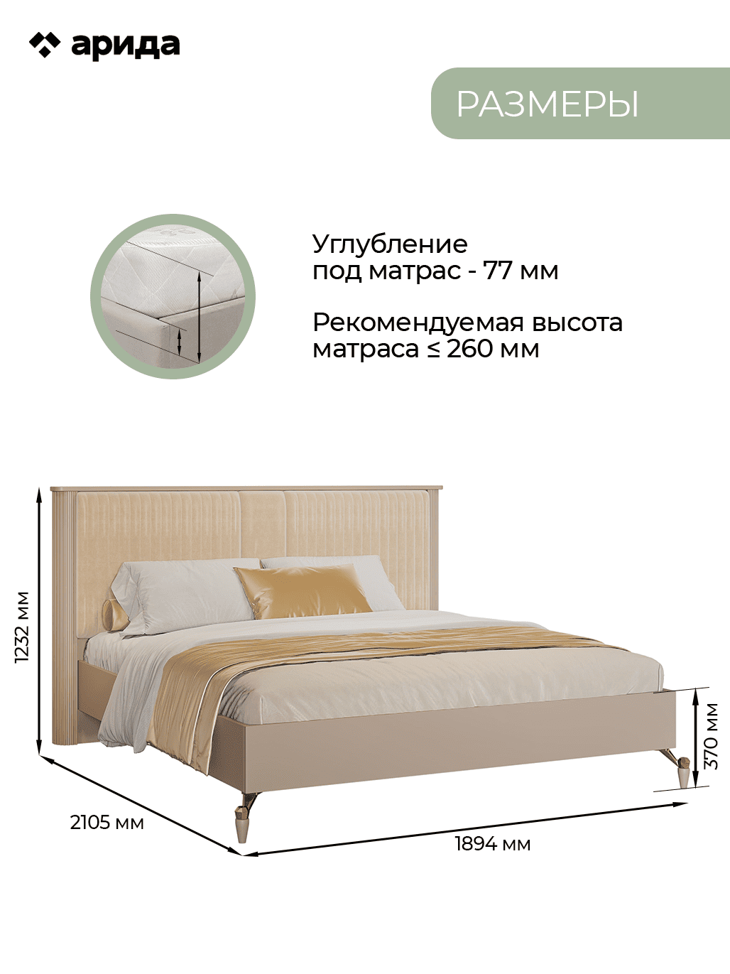 Кровать двуспальная (160х200) с мягким изголовьем Мадрид (бежевый)