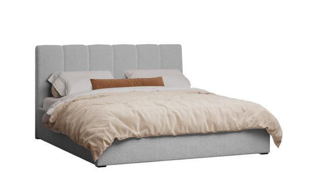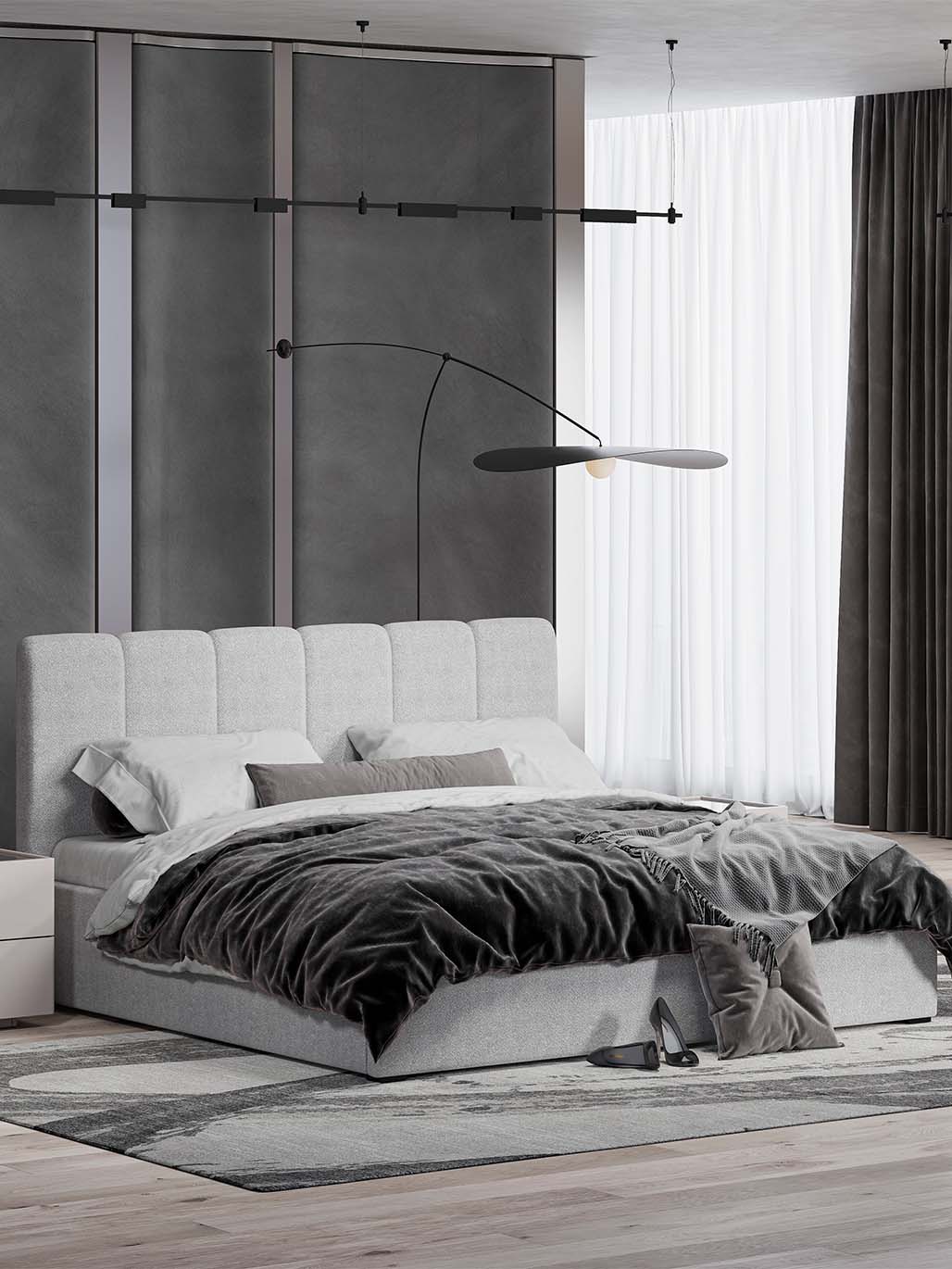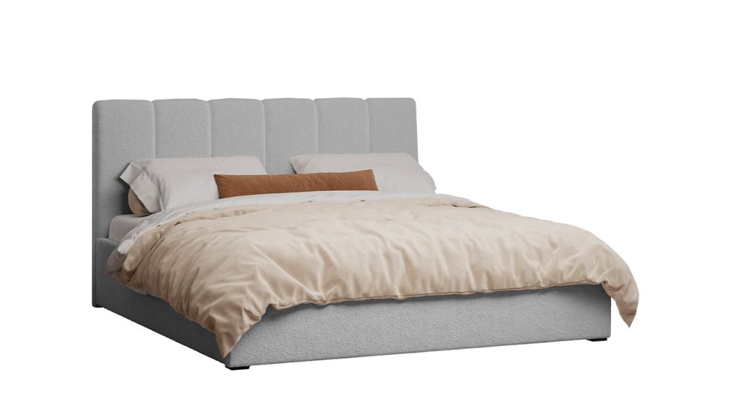 Кровать двуспальная (160х200) с малым мягким изголовьем Леонардо (серый кашемир/шенилл-букле серый)
