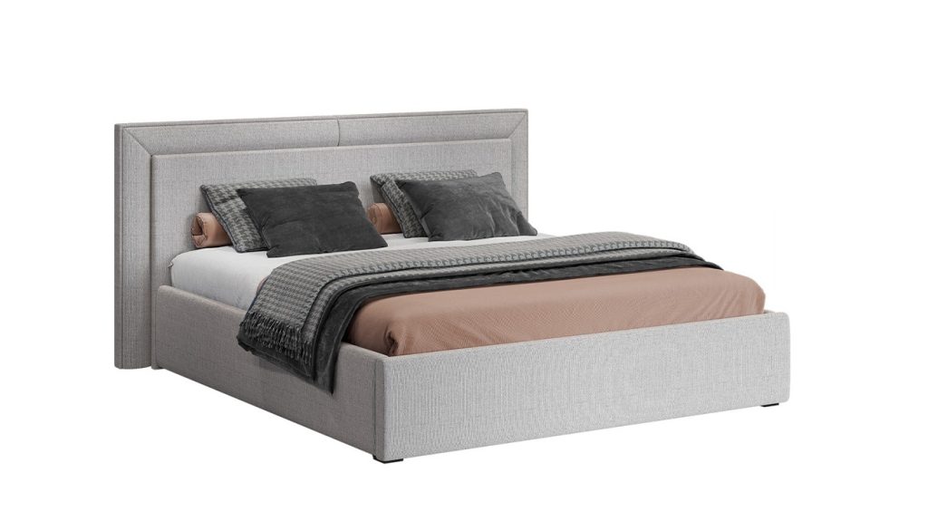Кровать Афина выполнена в современном и лаконичном дизайне с обивкой из ткани твид, которая придаёт ей мягкость и утончённый вид. Царги и изножье обиты тканью, что обеспечивают комфорт. Стильное изголовье с чёткими линиями и сдержанной эстетикой подчёркивает элегантность интерьера, делая кровать центральным элементом спальни.