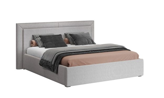 Кровать двуспальная (160х200) с мягким изголовьем Афина (твид светло-серый)