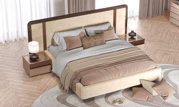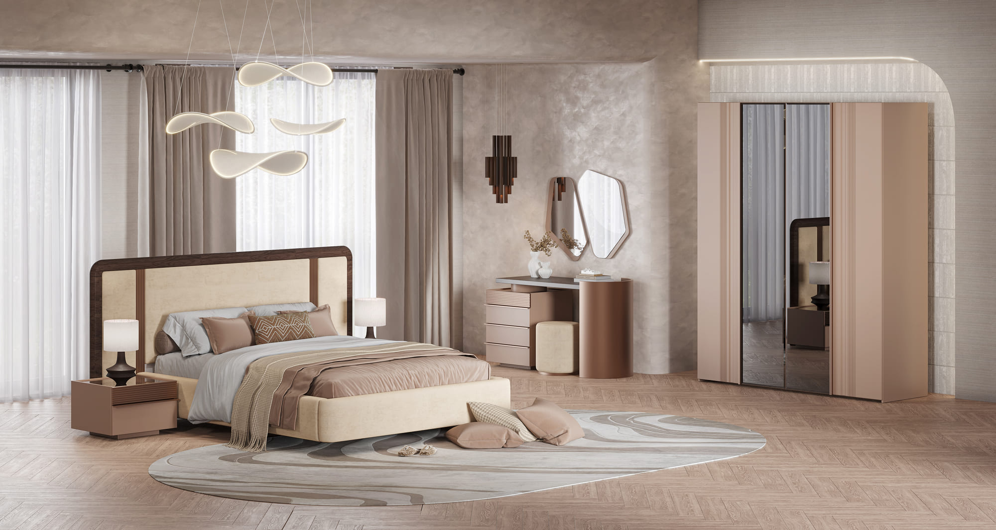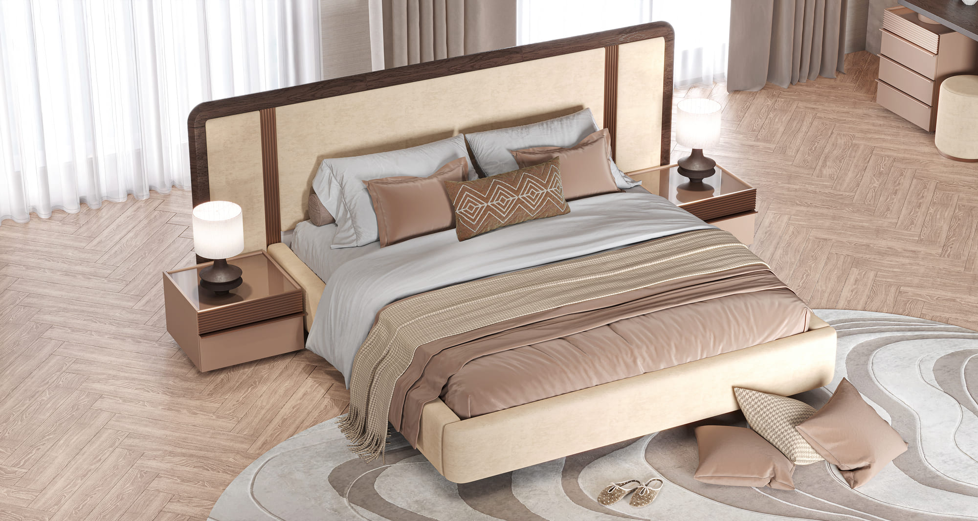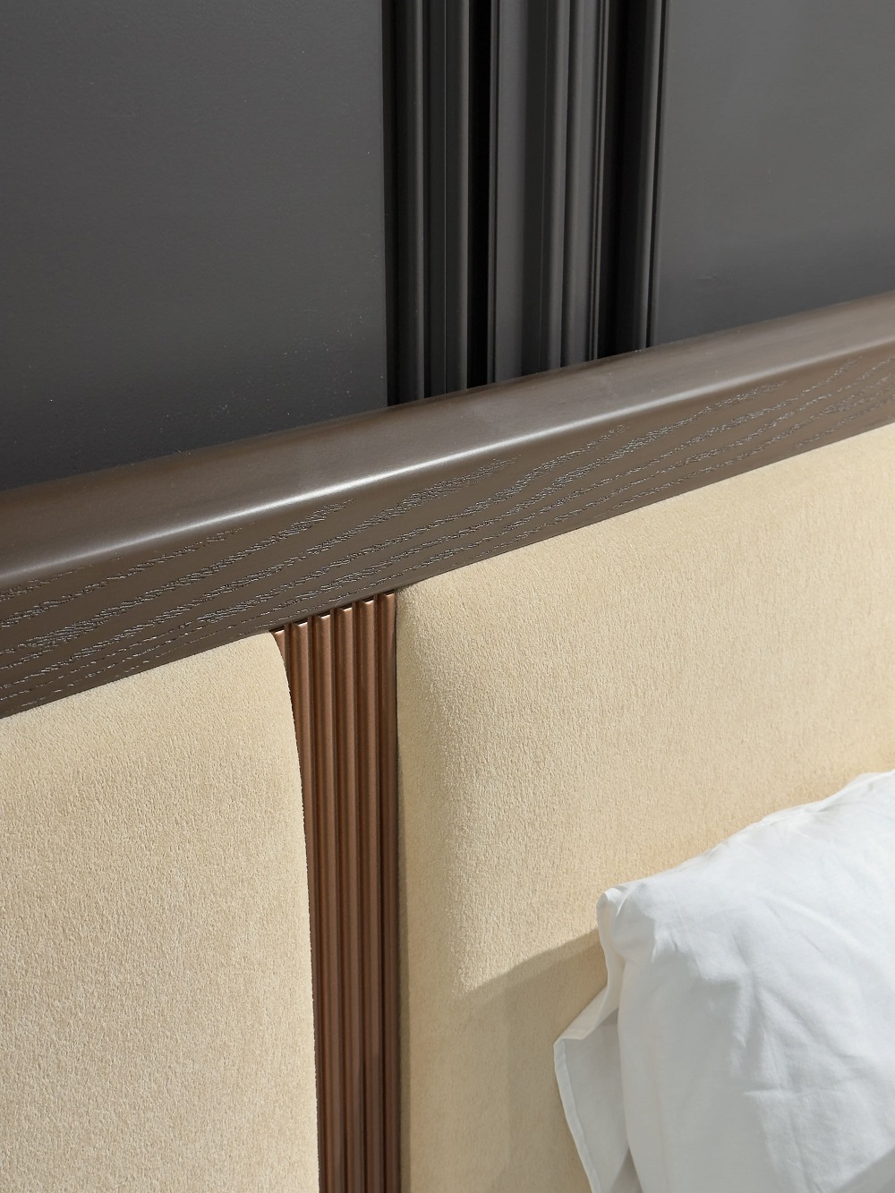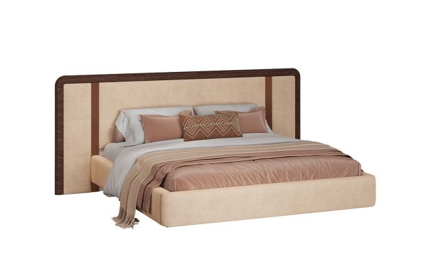 Кровать двуспальная (160х200) с мягким изголовьем Виктория (мокиато/венге/микро-букле коричневый)