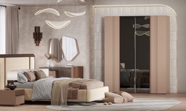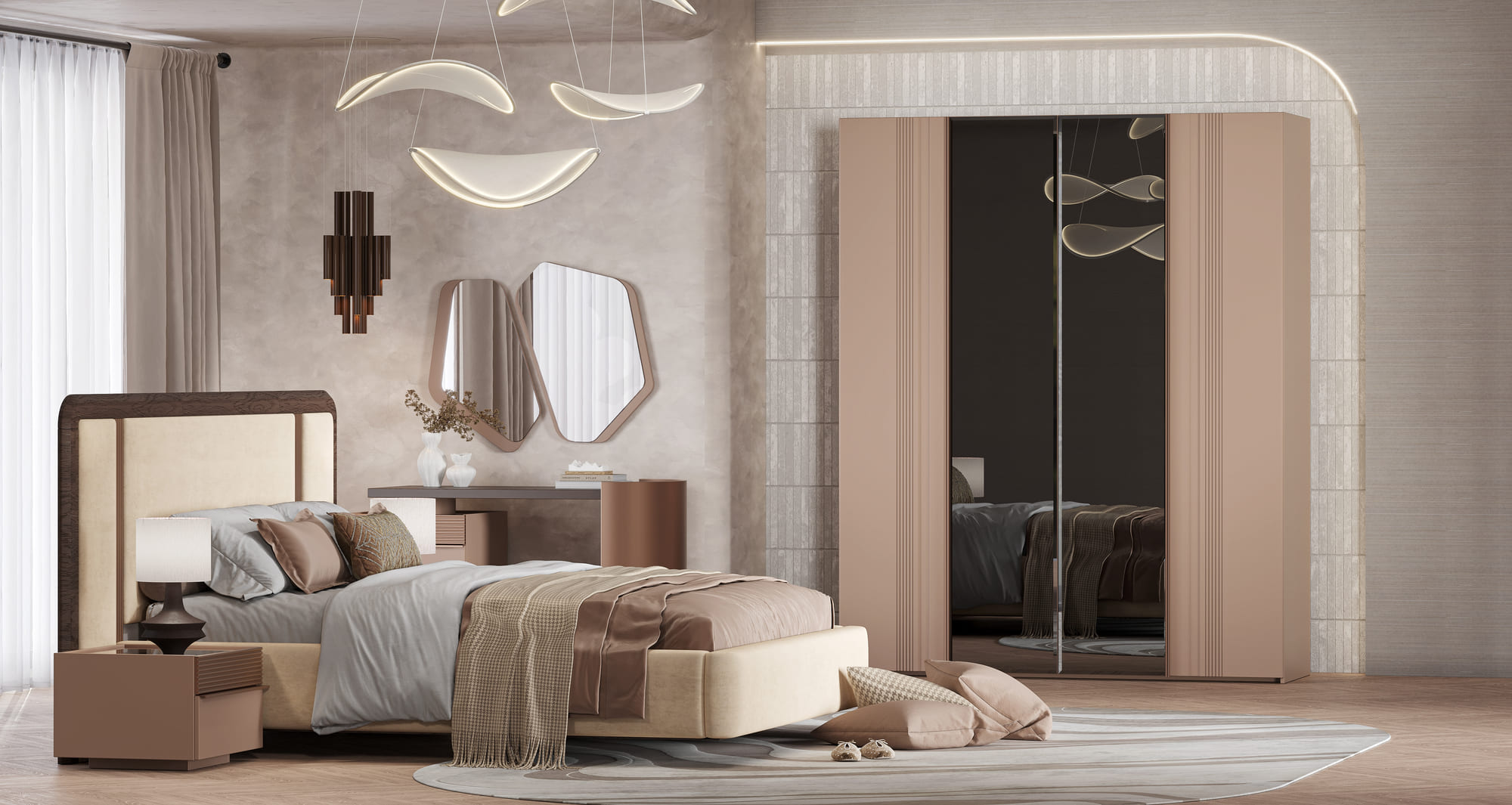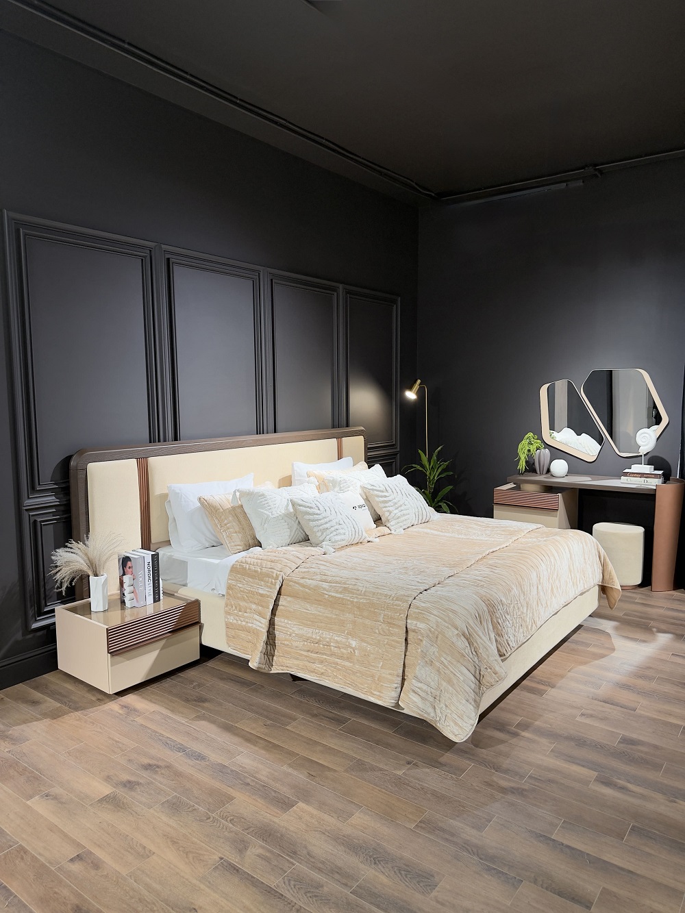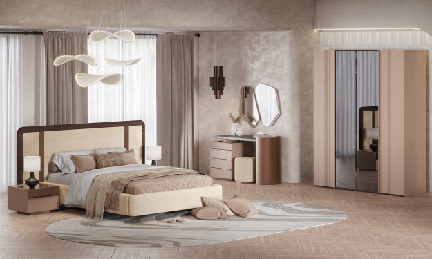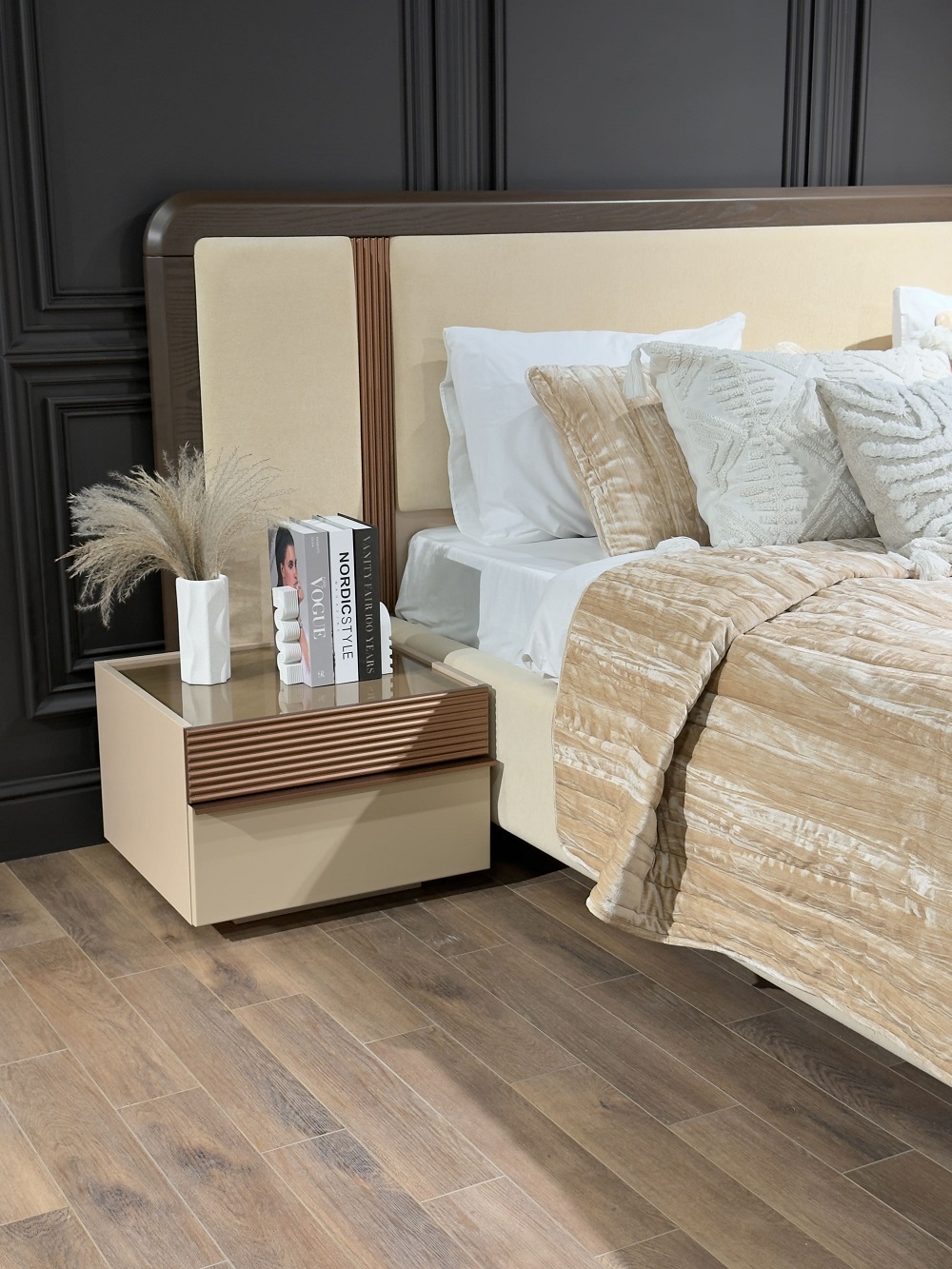 Кровать двуспальная (160х200) с мягким изголовьем Виктория (мокиато/венге/микро-букле коричневый)
