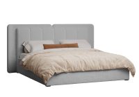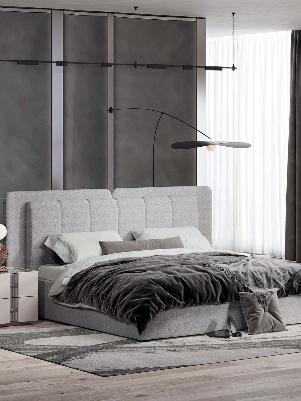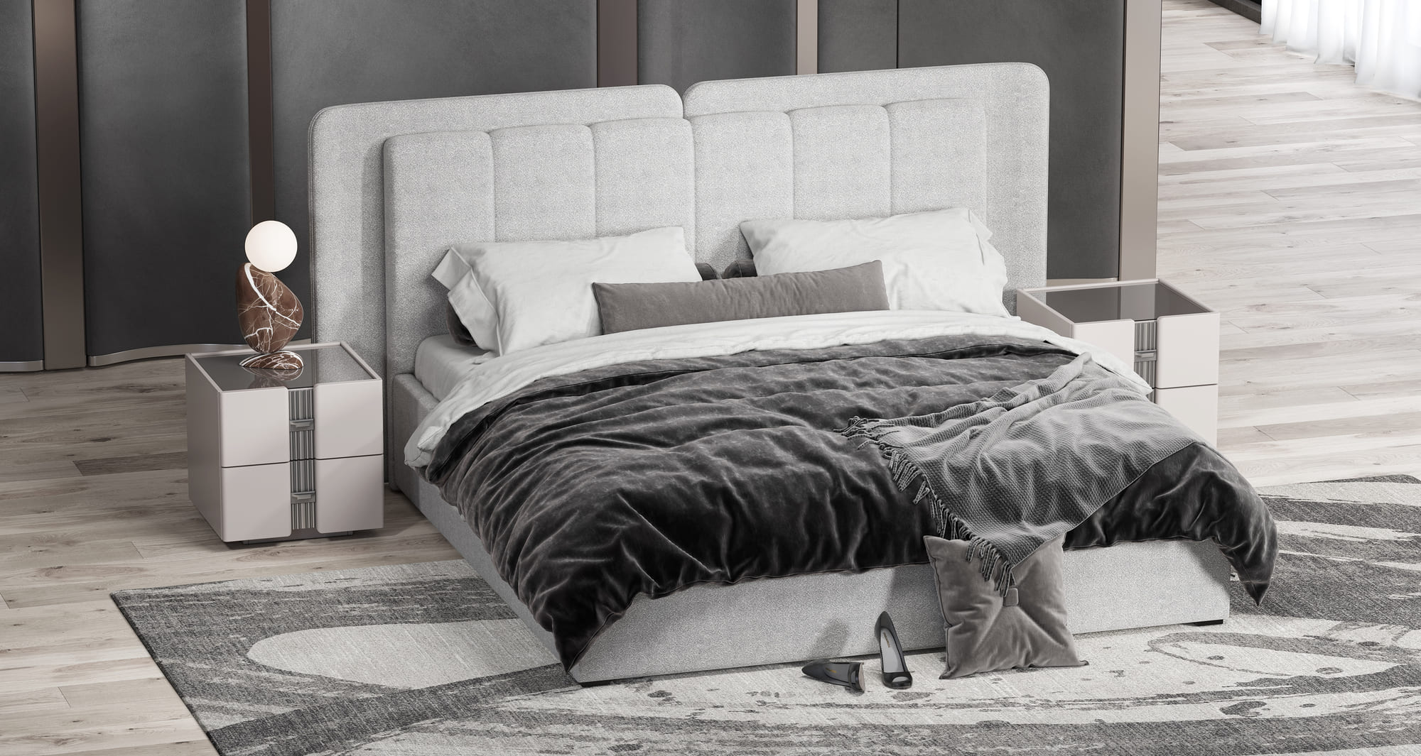 Кровать двуспальная (180х200) с малым и большим мягким изголовьем Леонардо (серый кашемир/шенилл-букле серый)