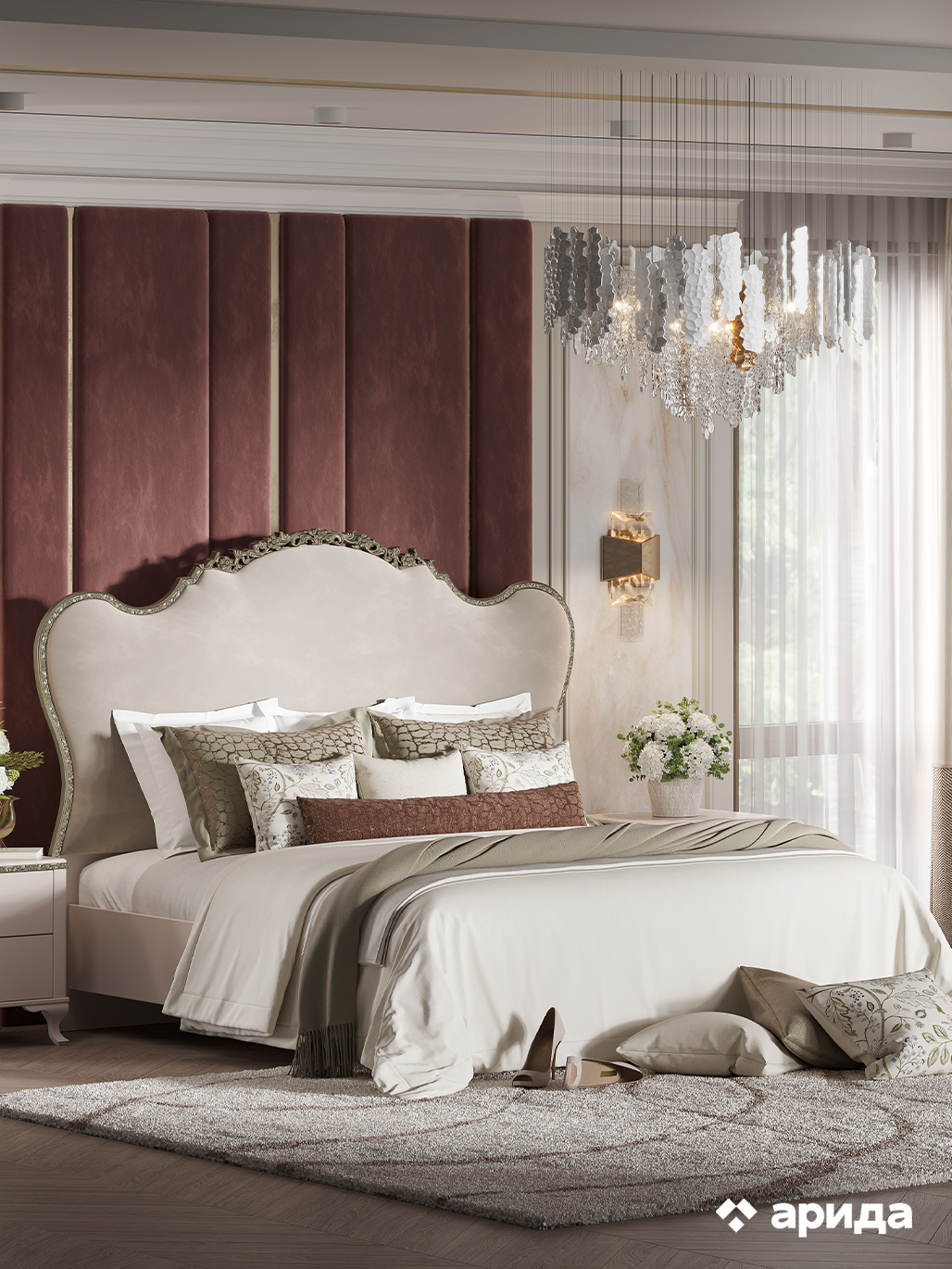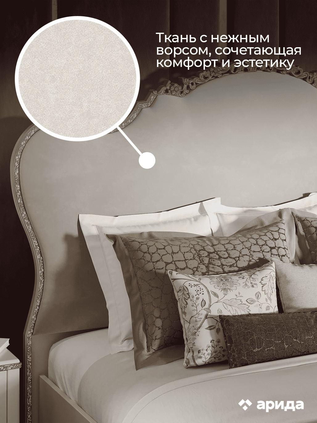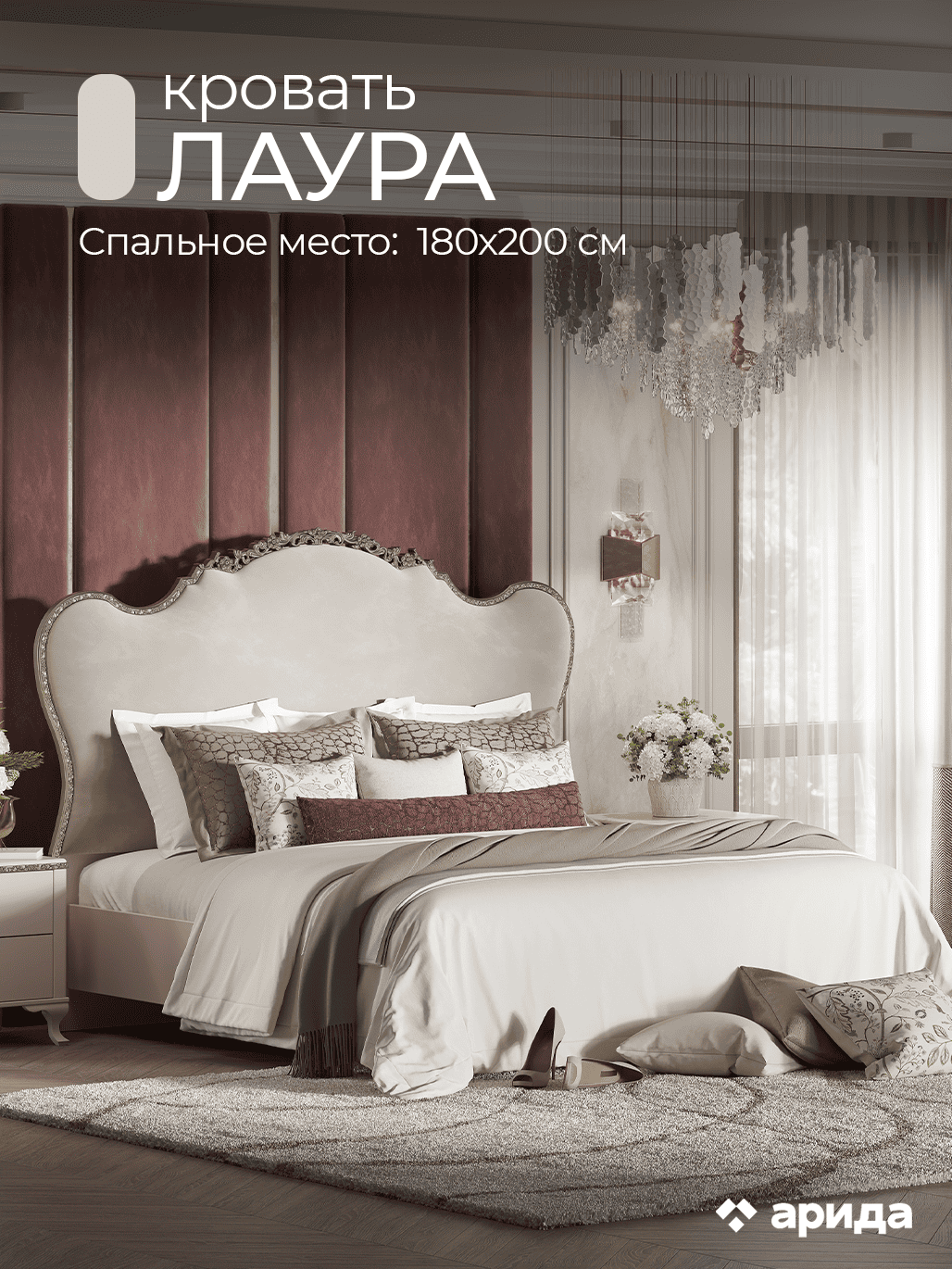Кровать двуспальная (180х200) с мягким изголовьем Лаура (бежевый)