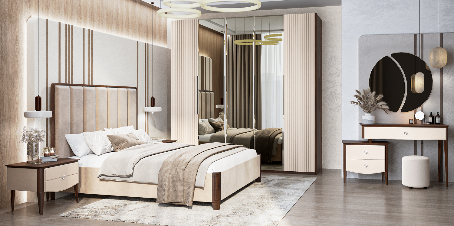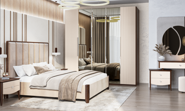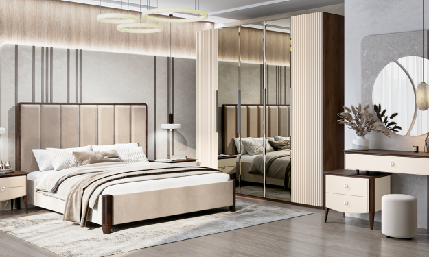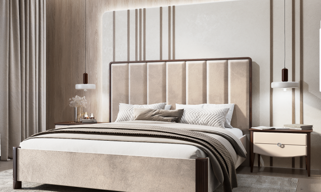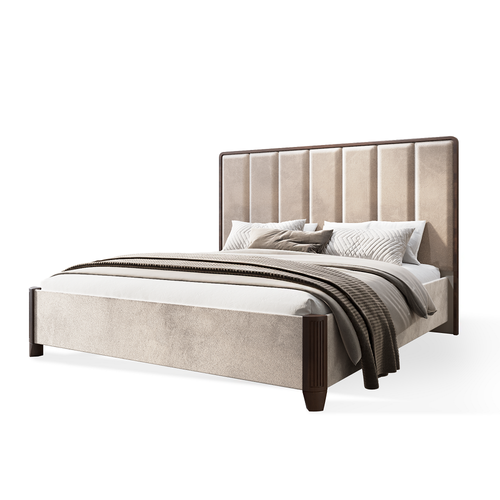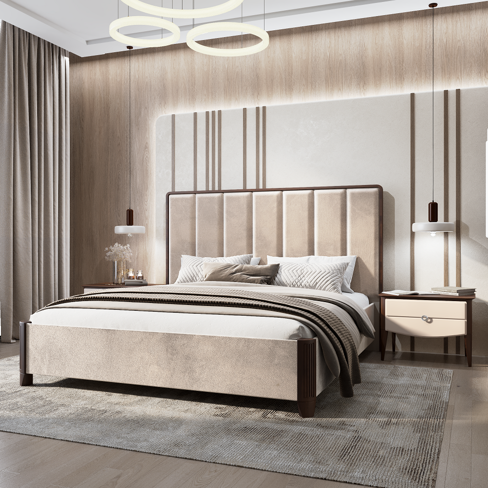 Кровать двуспальная (180х200) с мягким изголовьем Жаклин (бежевый)