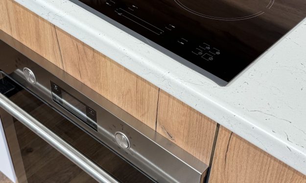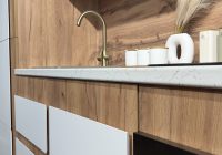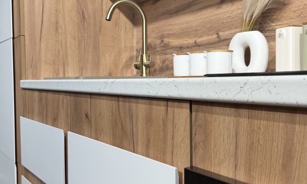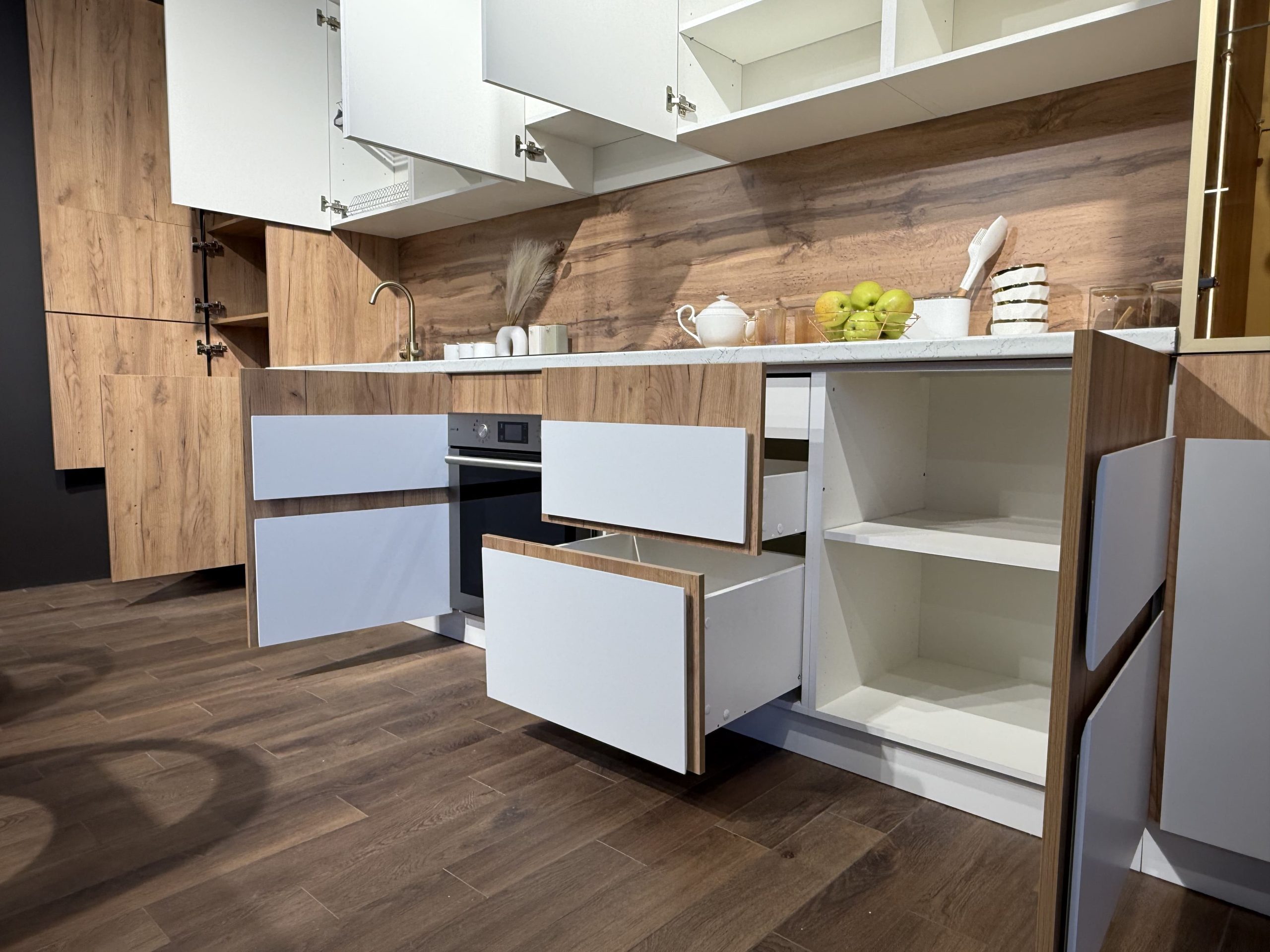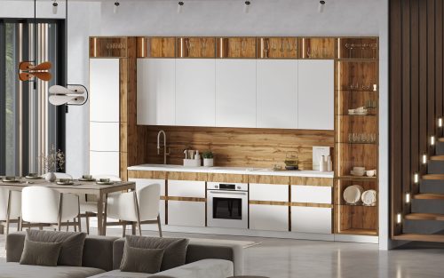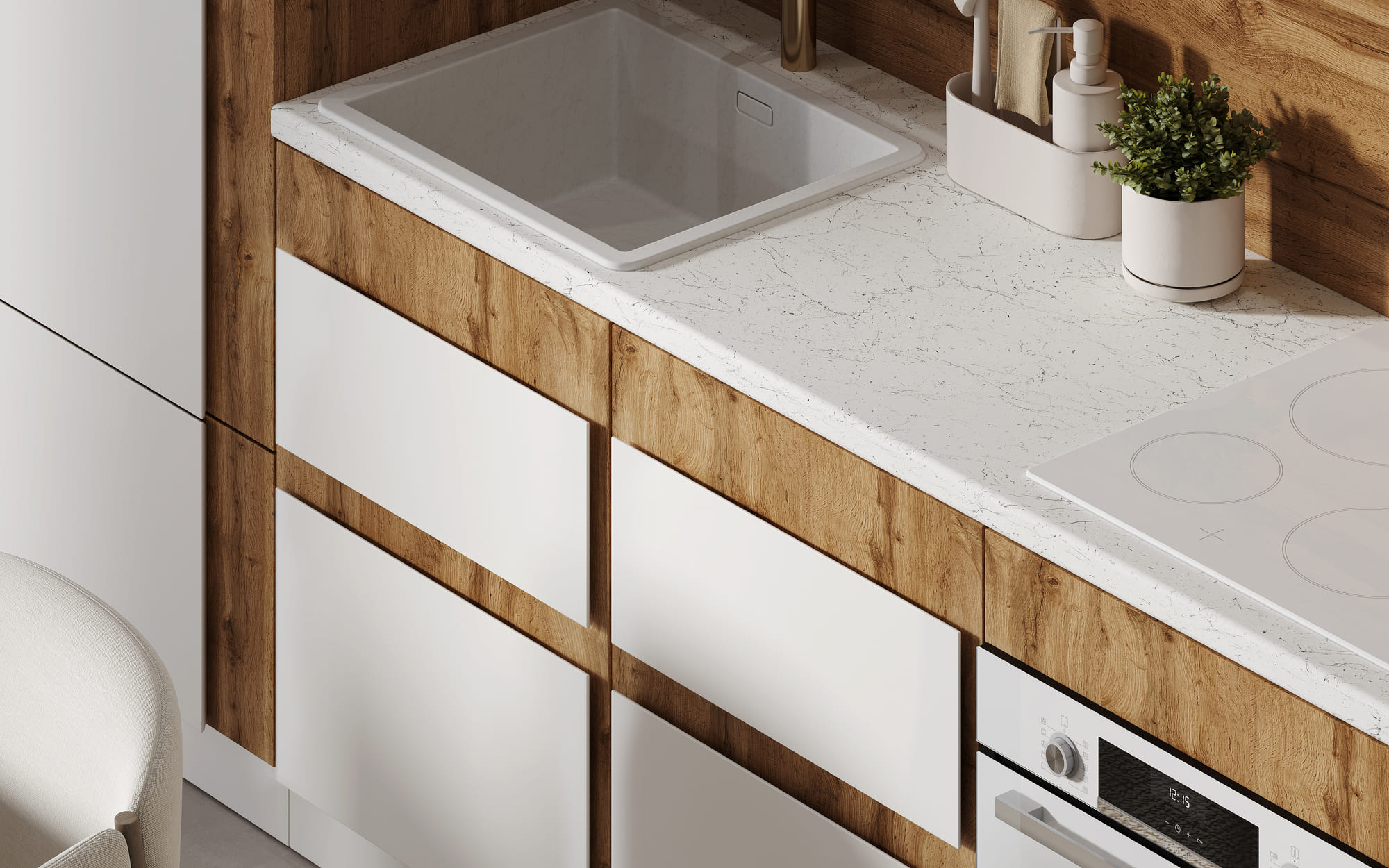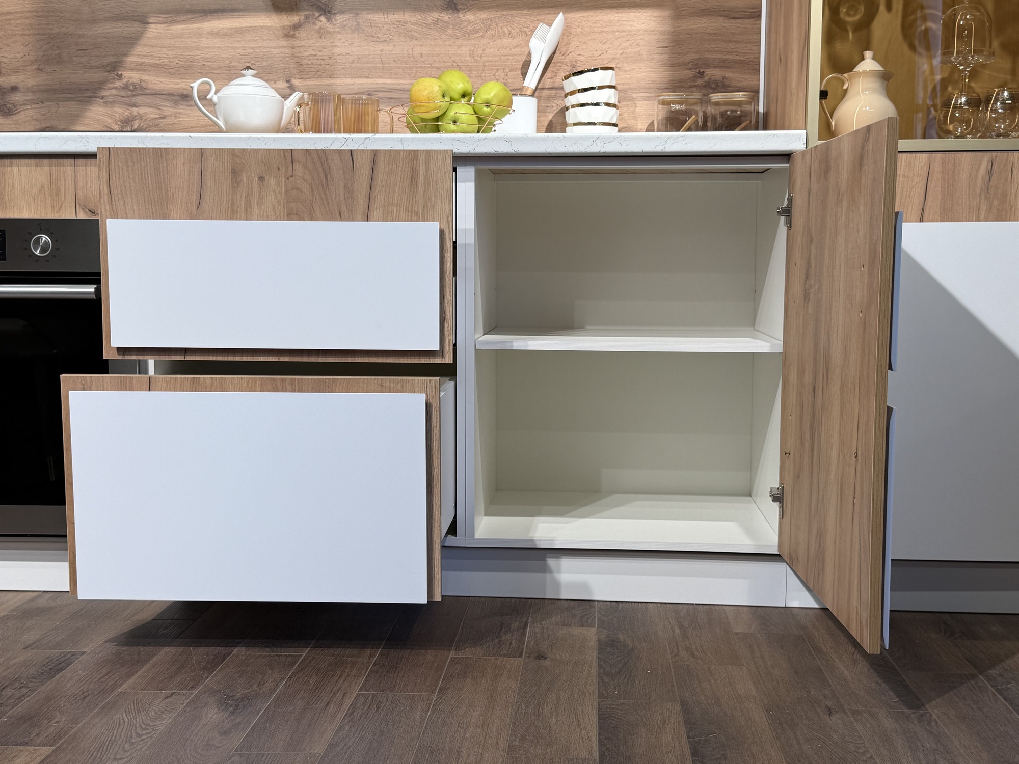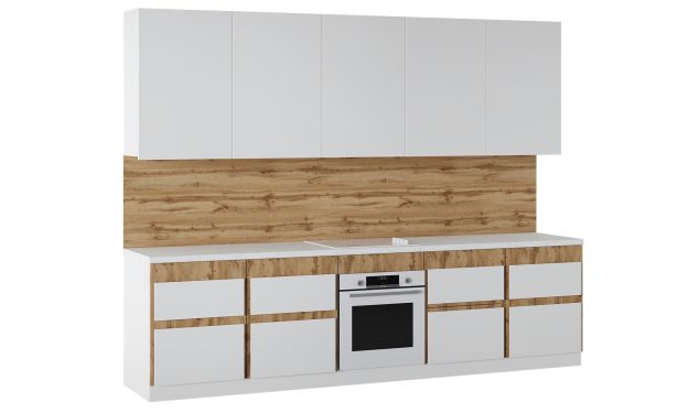 Кухня Аманда 2 уровня прямая 3 м. (белый/дуб ботан/мрамор)