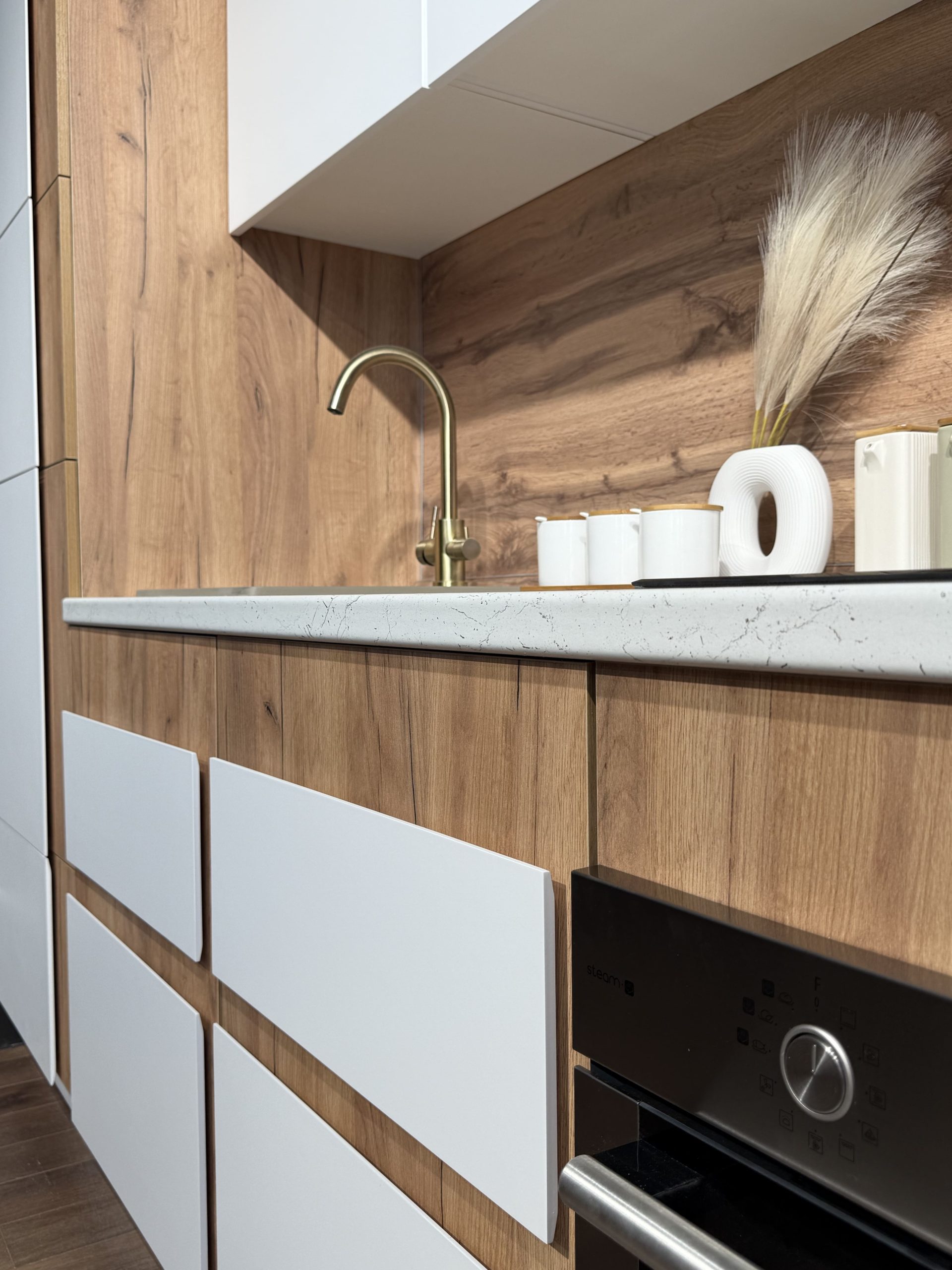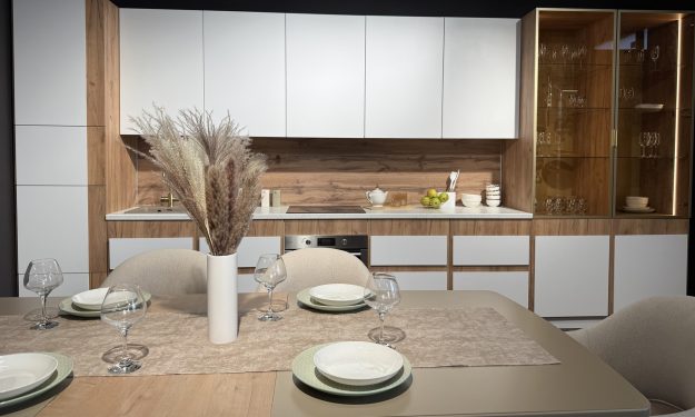 Кухня «Аманда» — это современное воплощение уюта и функциональности. Мягкие тона фасадов создают спокойную и комфортную атмосферу, а симметричные детали придают интерьеру структуру и эстетику.