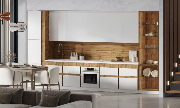 Кухня «Аманда» — это современное воплощение уюта и функциональности. Мягкие тона фасадов создают спокойную и комфортную атмосферу, а симметричные детали придают интерьеру структуру и эстетику.