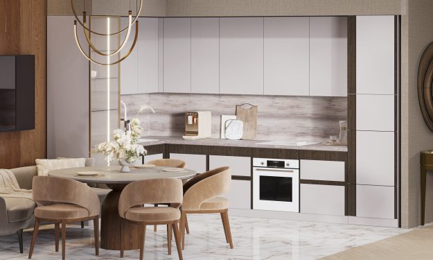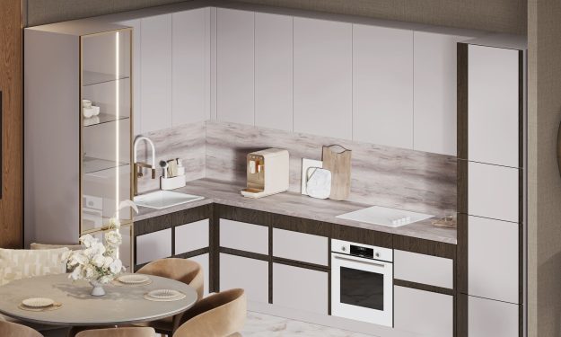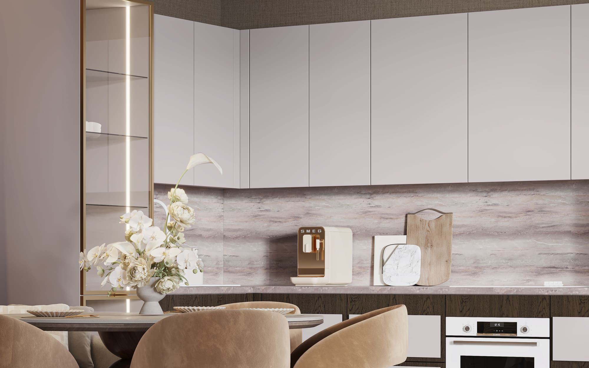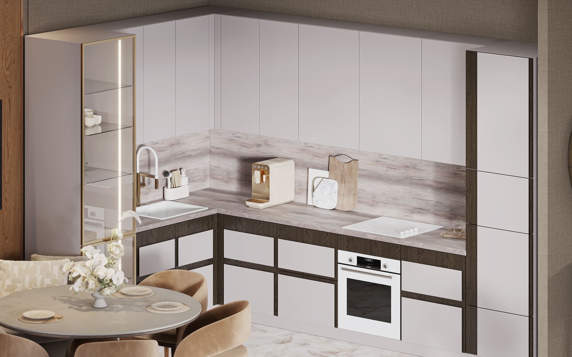 Кухня «Аманда» — это современное воплощение уюта и функциональности. Мягкие тона фасадов создают спокойную и комфортную атмосферу, а симметричные детали придают интерьеру структуру и эстетику.