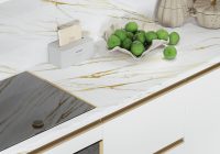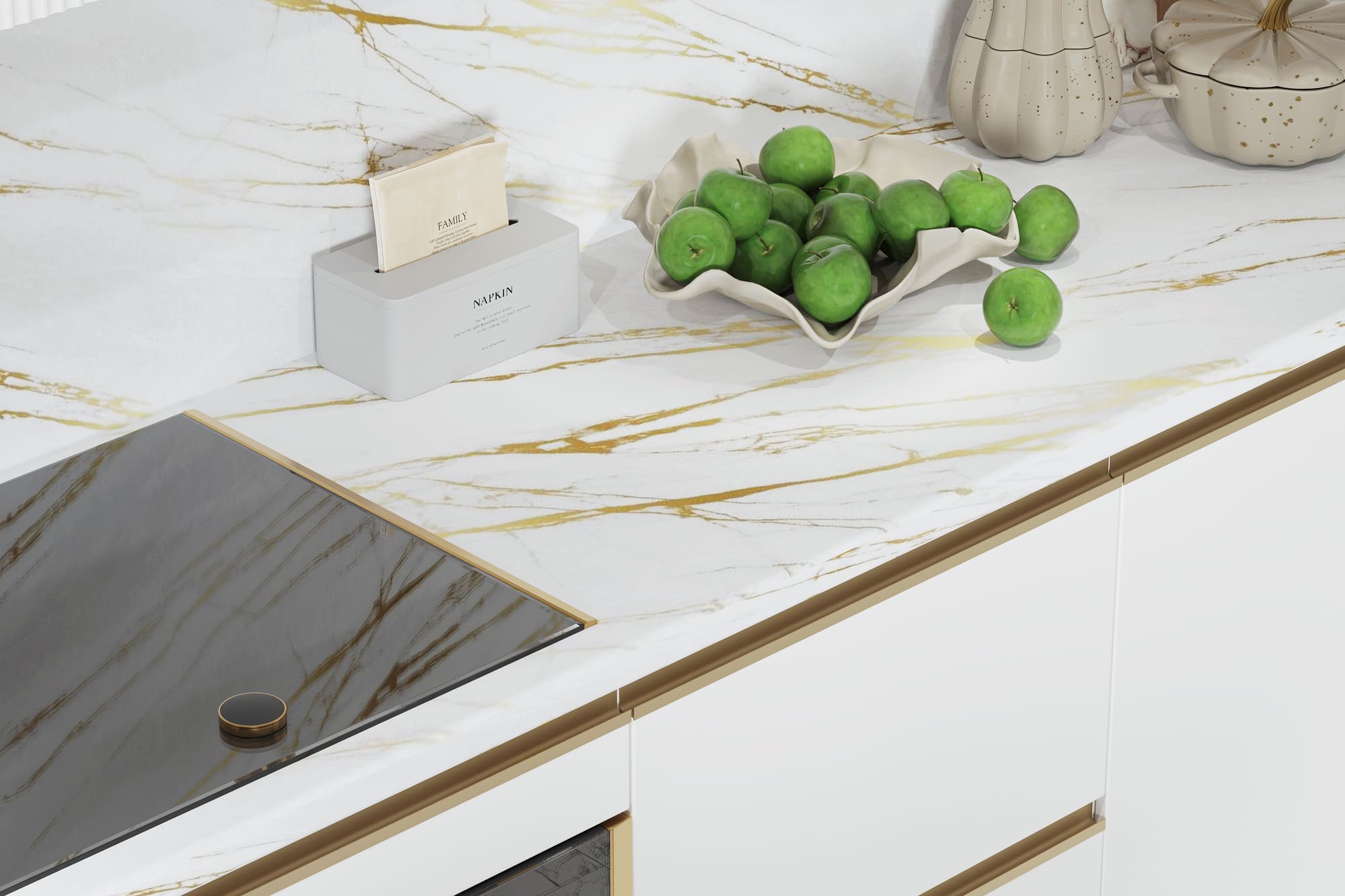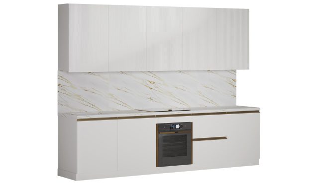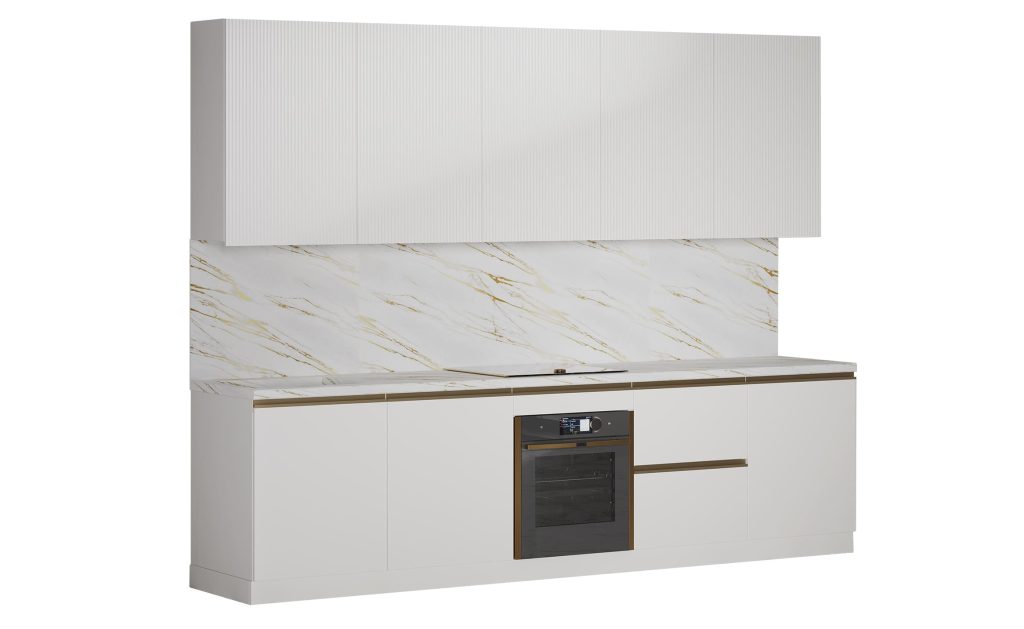 Кухня Мария 2 уровня прямая 3 м. (белый/золото/мрамор)