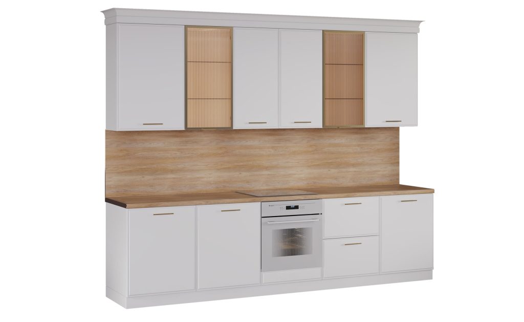 Кухня Виктория прямая 3 м. (белый/золото/дуб)