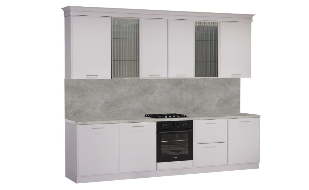 Кухня Виктория прямая 3 м. (серый кашемир/серебро/цемент)