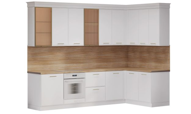 Кухня Виктория угловая 3.6×2.15 м. (белый/золото/дуб)