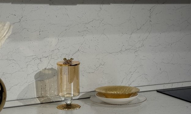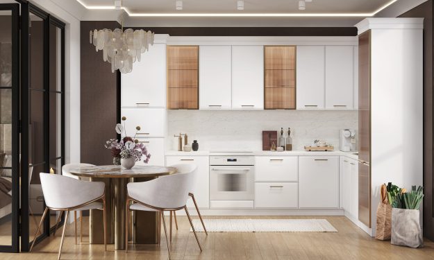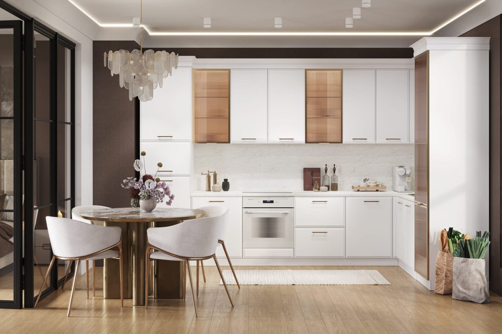 Кухня Виктория угловая 3.6×2.15 м. (белый/золото/мрамор)