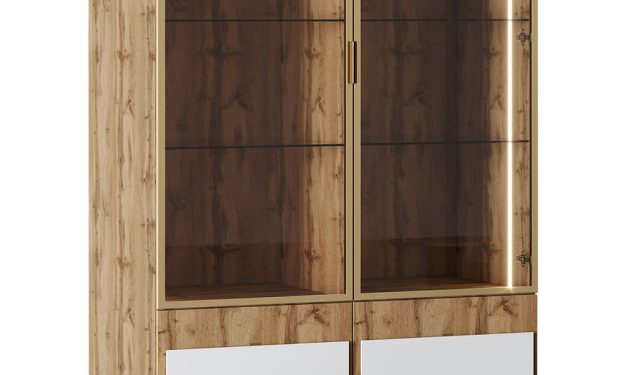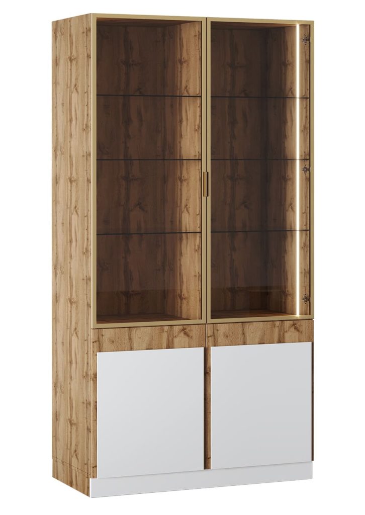 Пенал остеклённый 2 дв. Аманда 1200 (белый/дуб ботан)