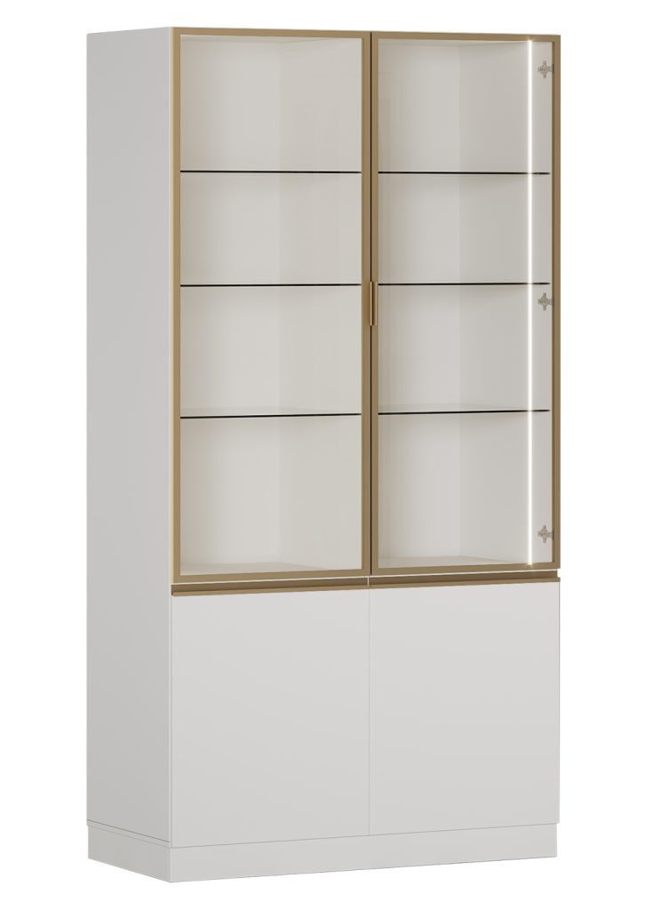 Пенал остеклённый 2 дв. Мария 1200 (белый/золото/мрамор)
