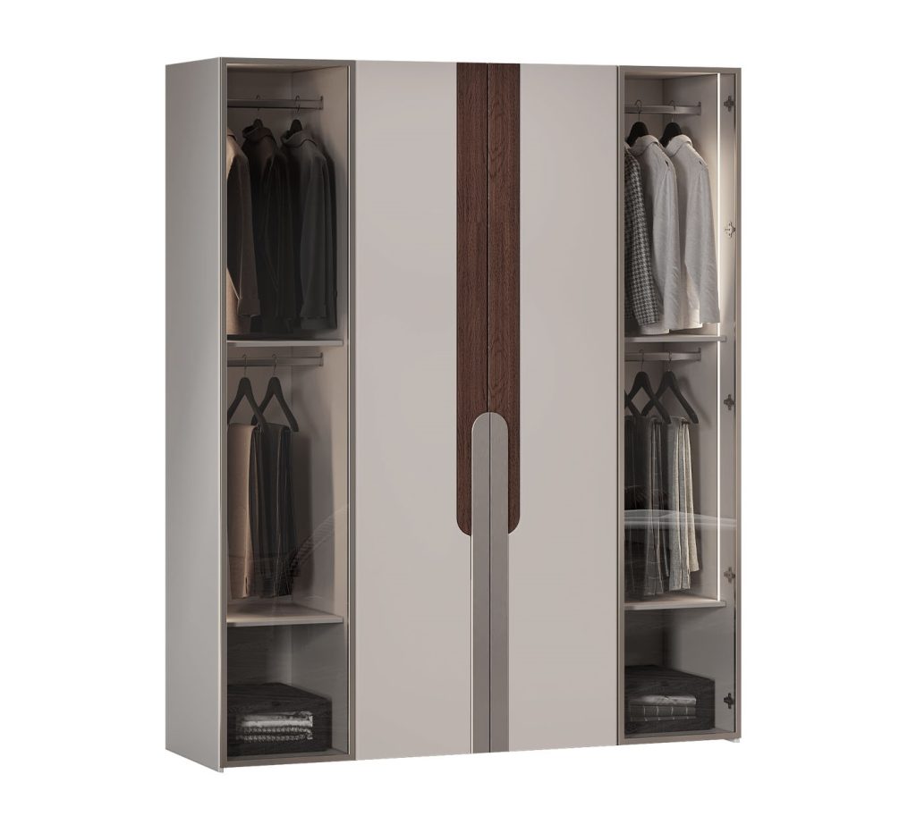 Шкаф 4-х дверный остеклённый «Диана» — это стильное и функциональное решение для вашего интерьера, сочетающее современные материалы и изысканный дизайн. Фасады шкафа выполнены со стеклом в алюминиевой рамке, что придает мебели современный и легкий вид.