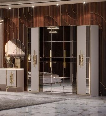 Шкаф 5-створчатый Грация (бежевый/золото)