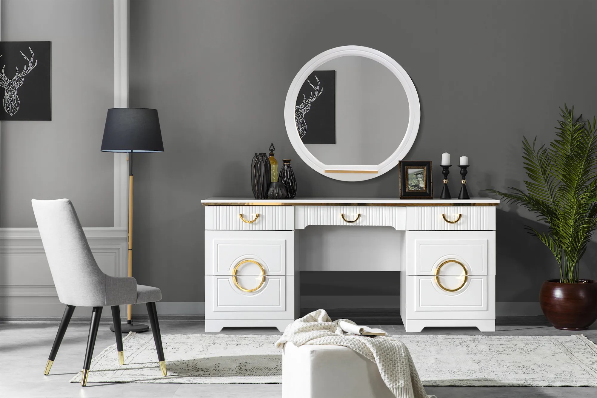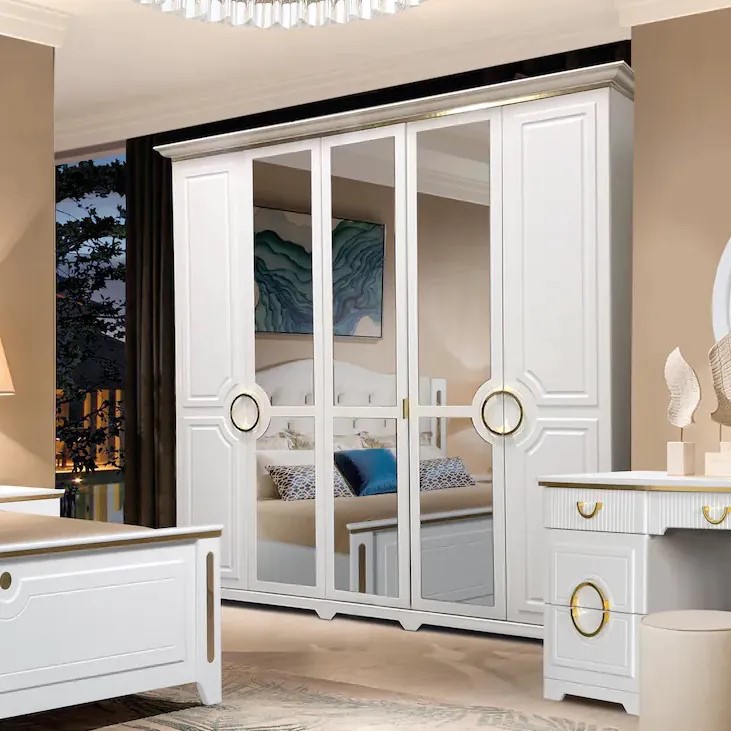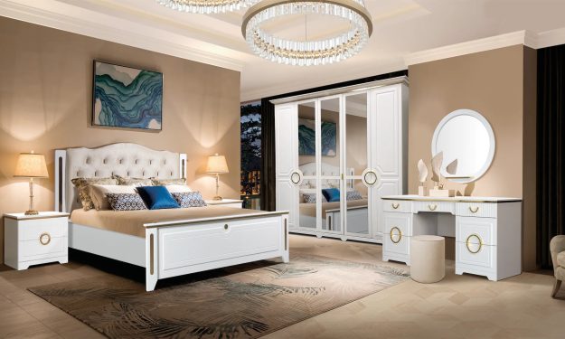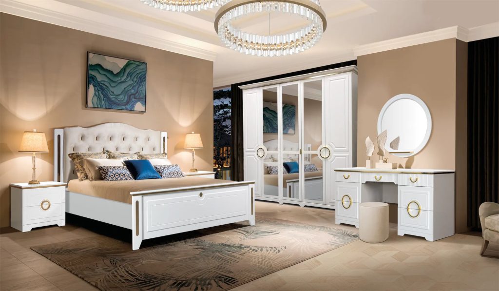 Спальня Мармарис (кровать 1.8 м.; шкаф 5-ти дв.; туалетный стол) белый/золото/эмаль