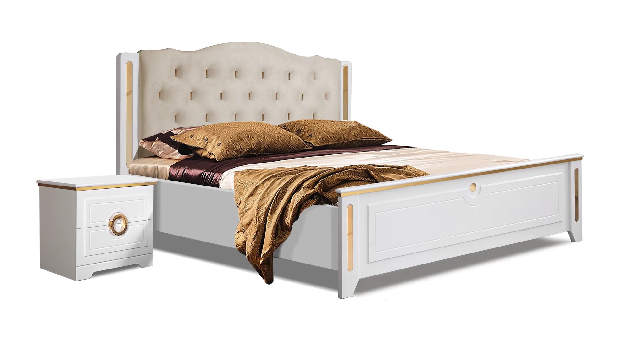 - Кровать двуспальная с мягким изголовьем: 1350(В)x1950(Ш)x2097(Г)