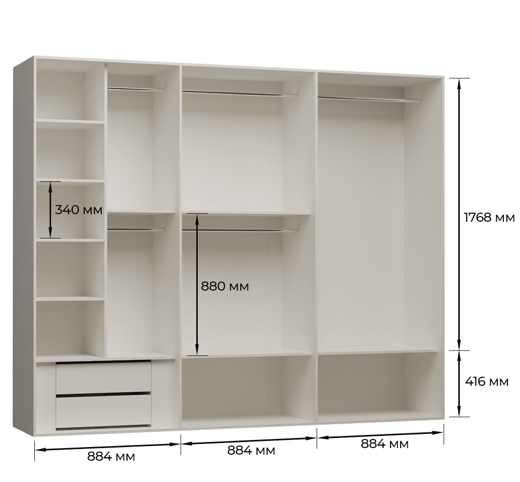 - Шкаф для одежды 6-ти дверный: 2254(В)x2716(Ш)x592(Г)