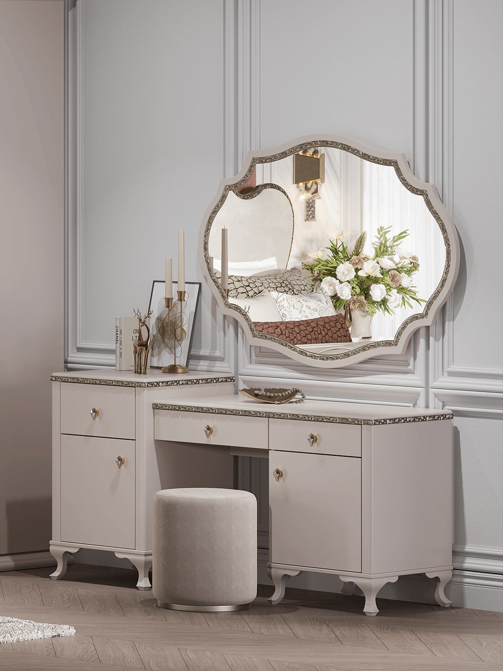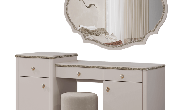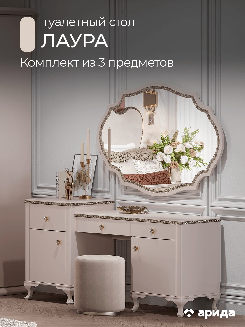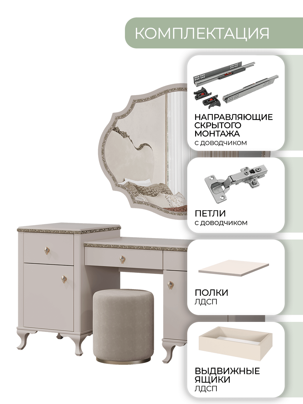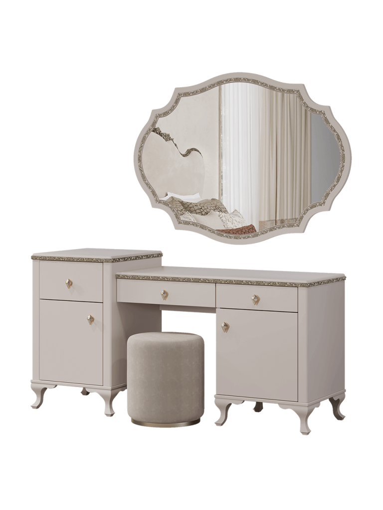 Туалетный стол с зеркалом и пуфом Лаура (бежевый)