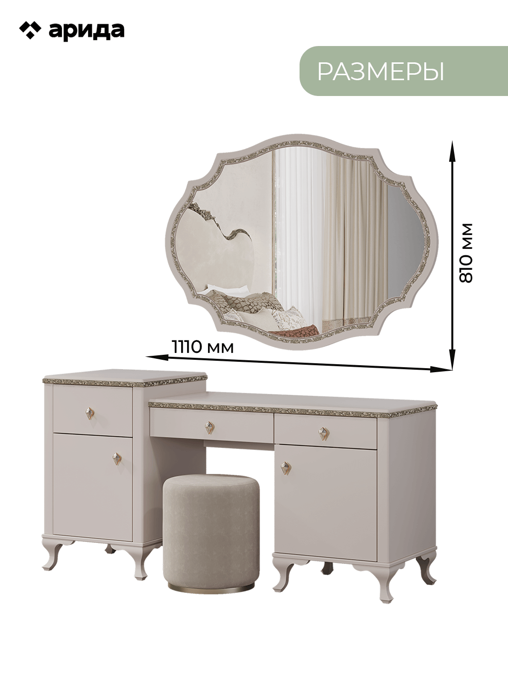 - Зеркало: 1110(Ш)x25(Г)x810(В)