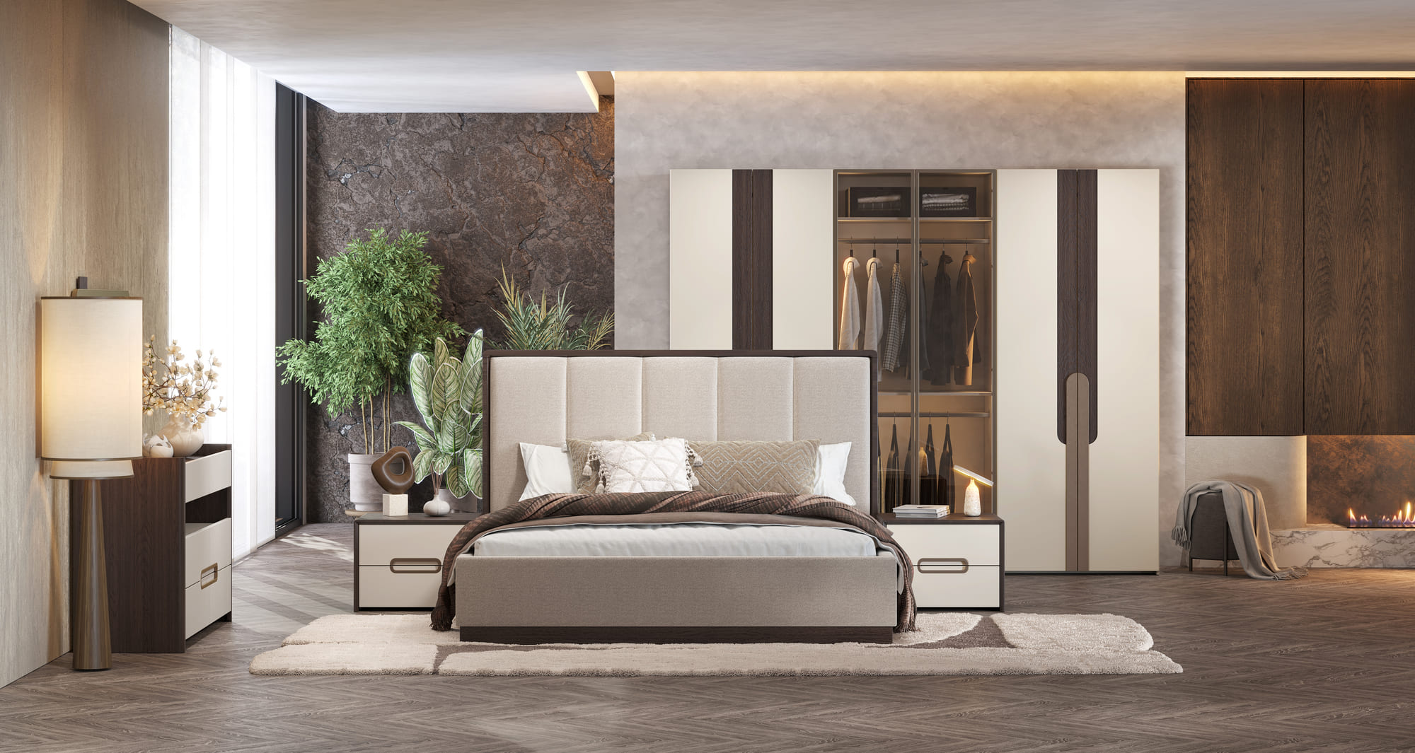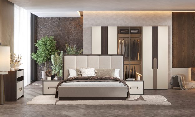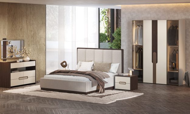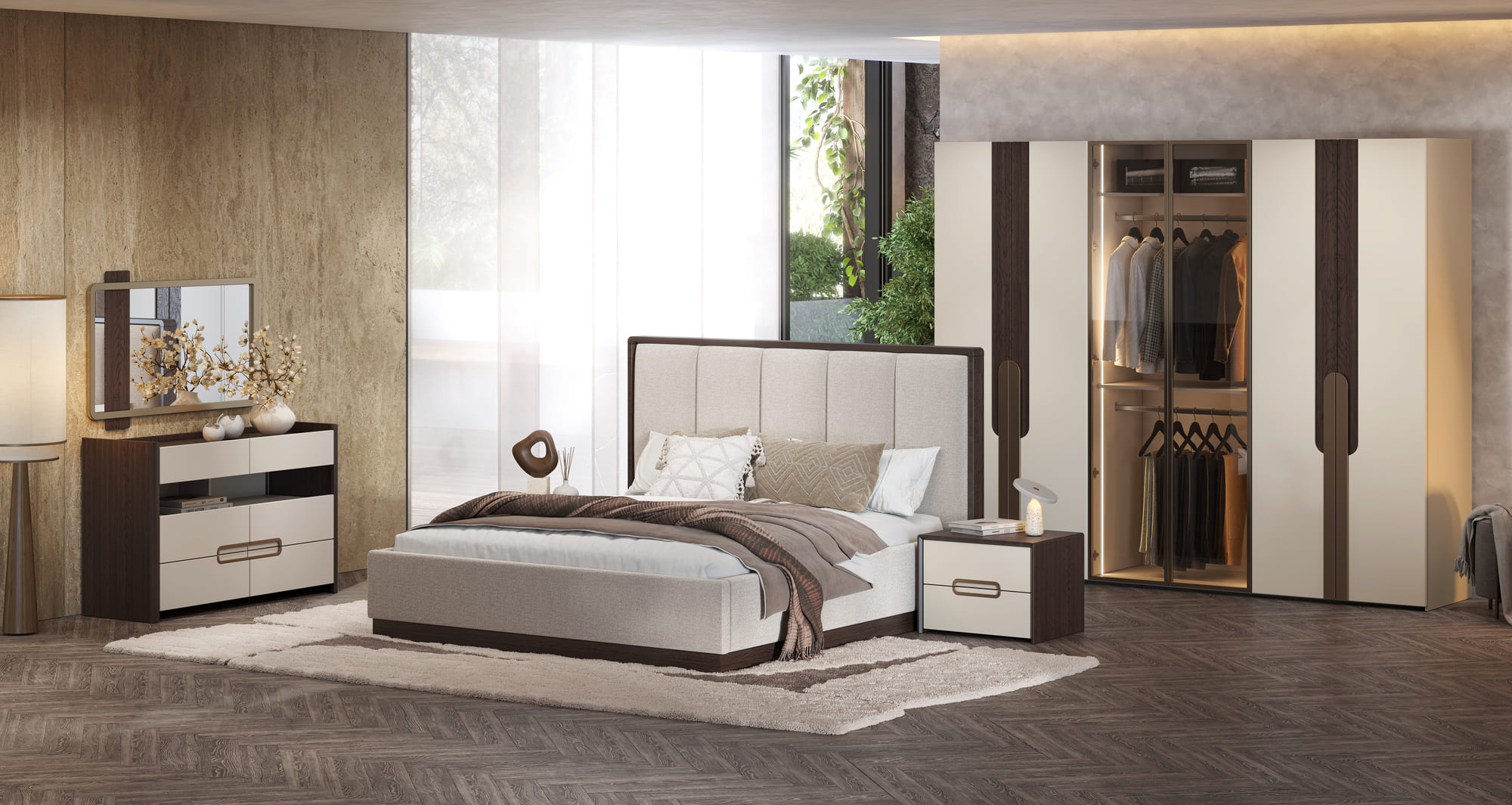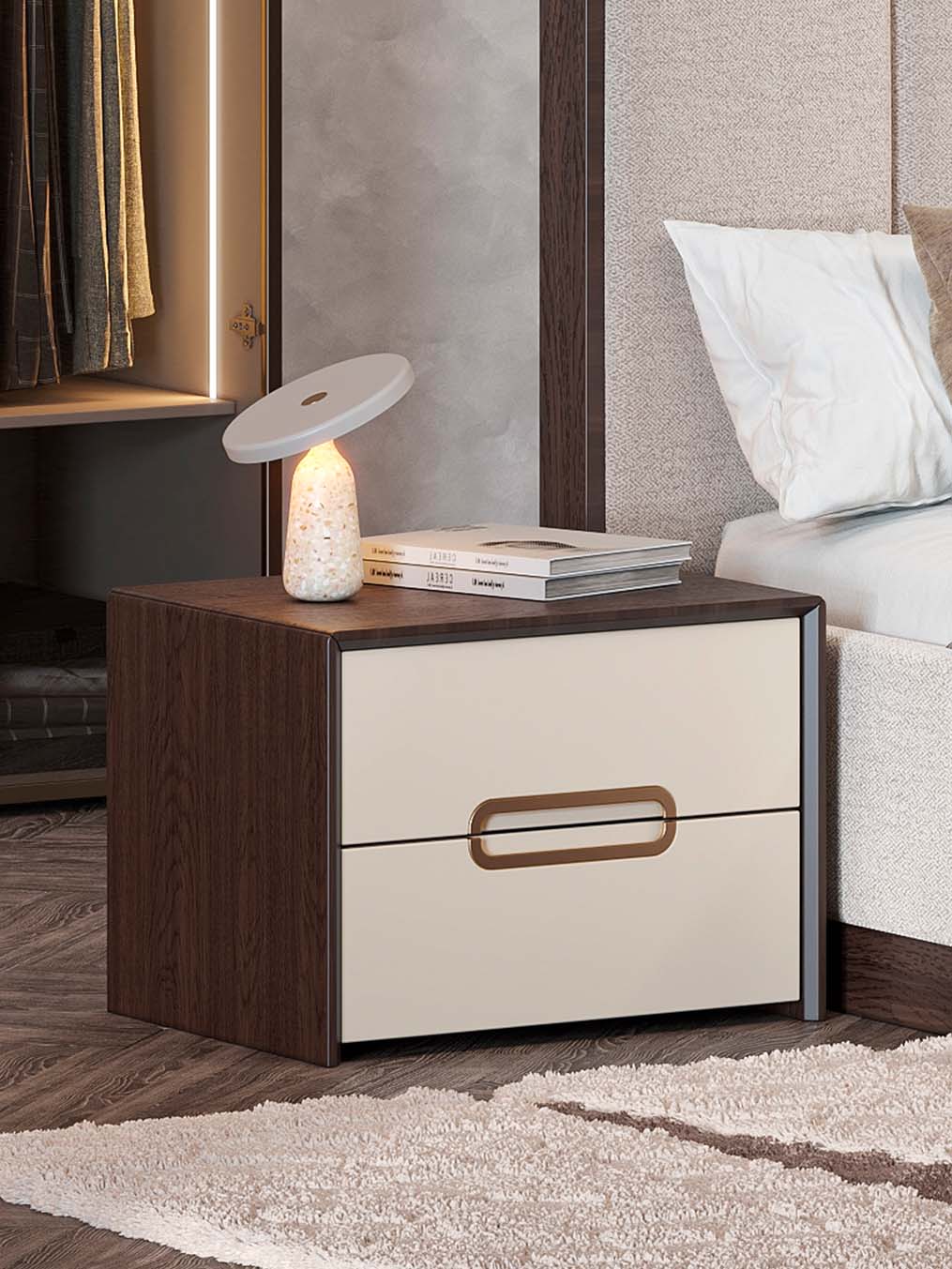 Тумба прикроватная «Диана» выполнена в едином стиле с кроватью и зеркалом — мягкие формы, натуральные текстуры и тонкая детализация.