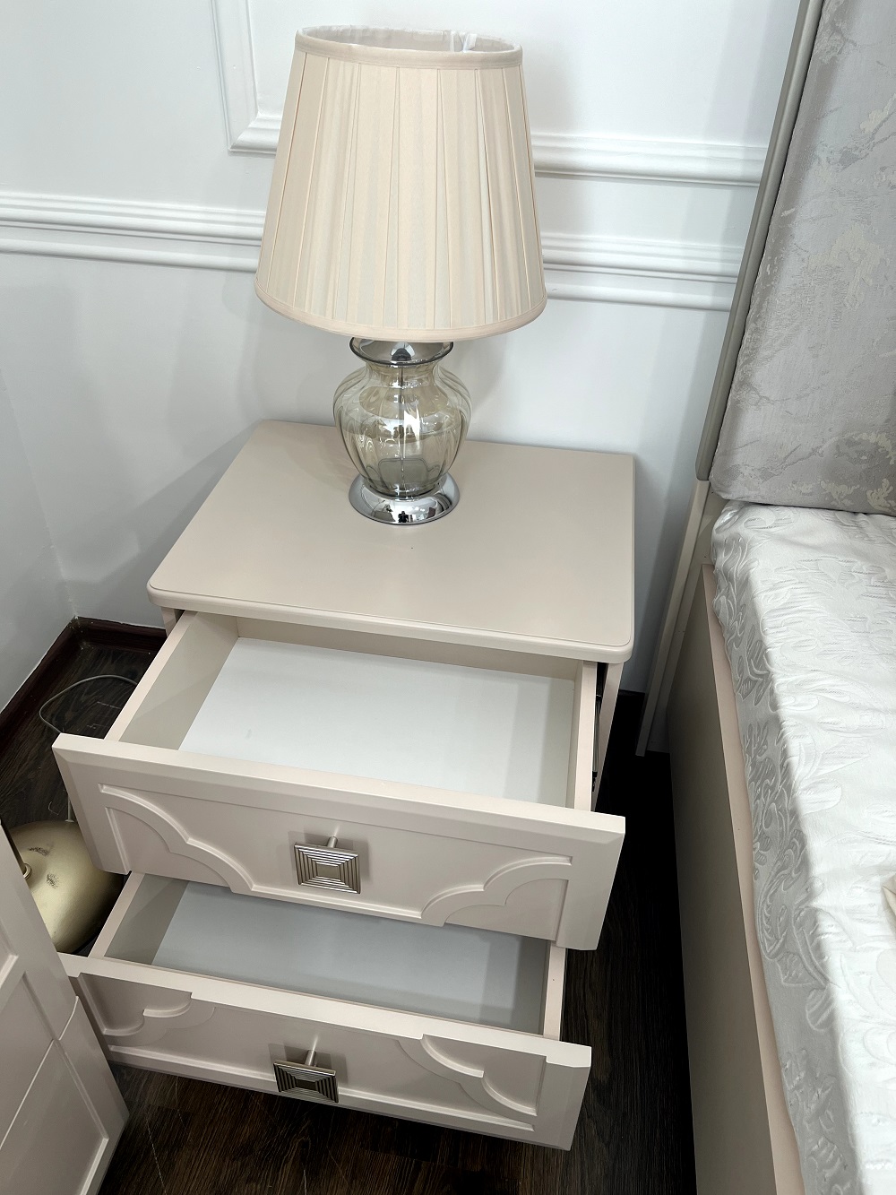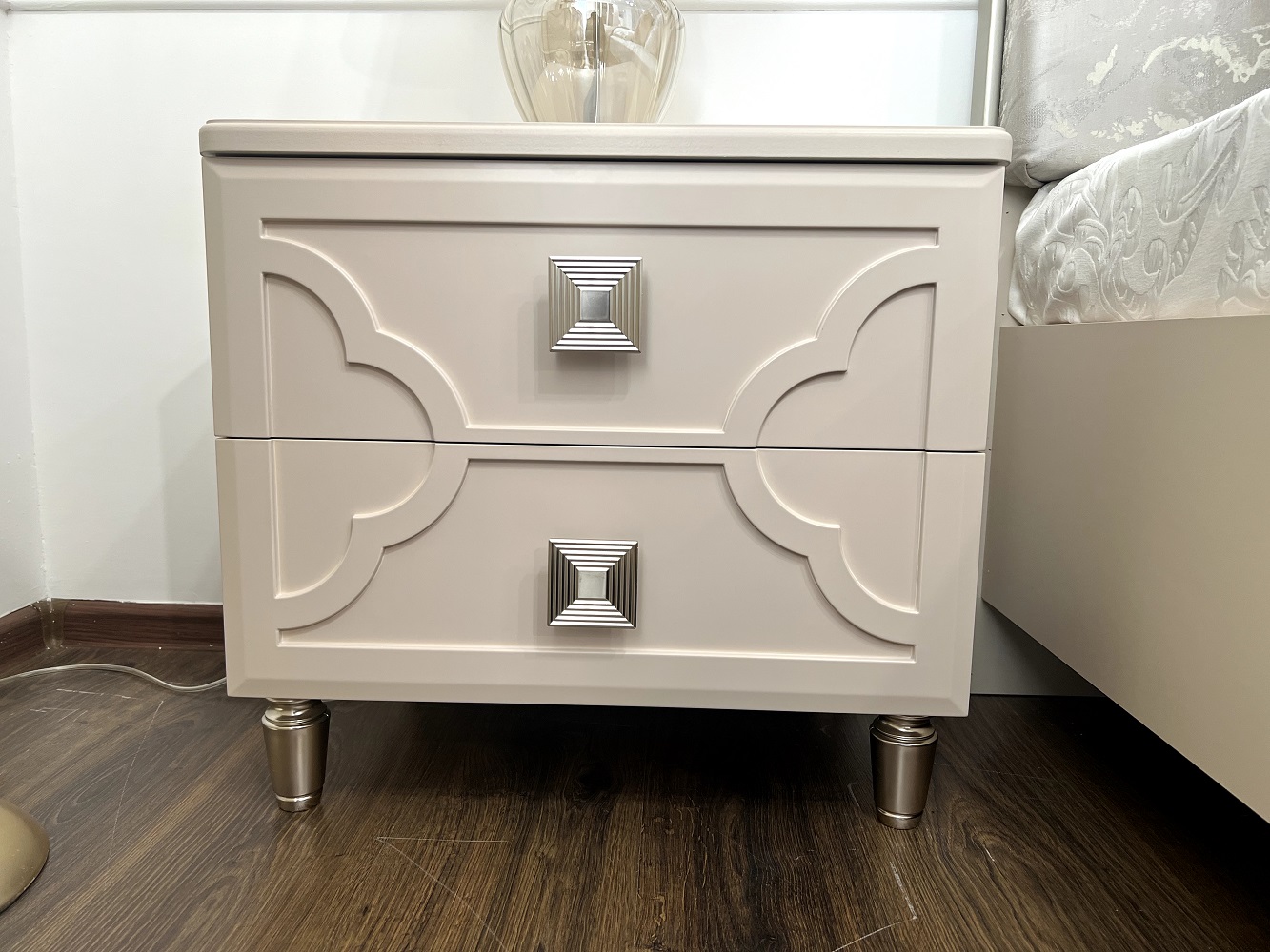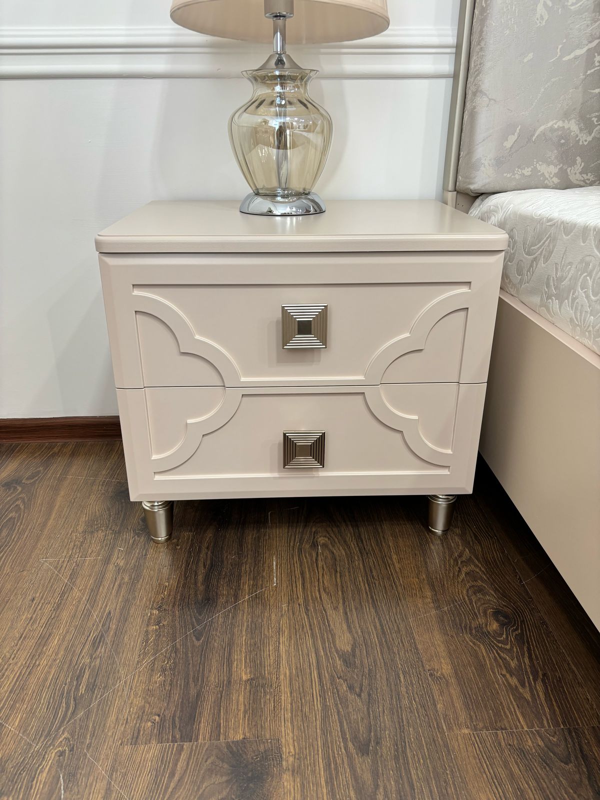 Тумба прикроватная Фелисия, особая изюминка коллекции — уникальный дизайн от дизайнеров из самых модных домов Van Cleef дизайн Alhambra представлен в виде повторяющегося сочетания четырехлистного клевера талисман, который означает удачу и благополучие.