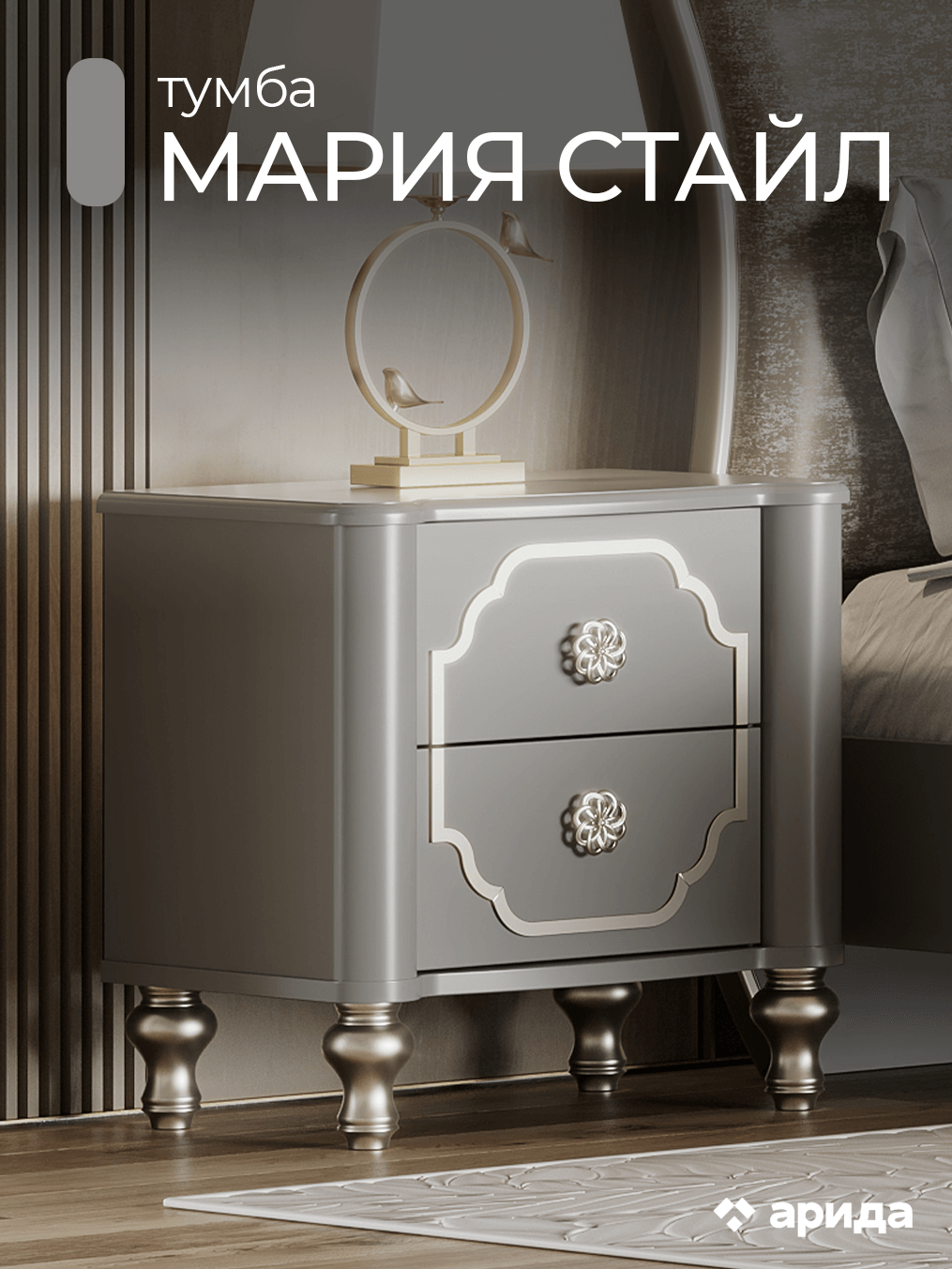 Тумба прикроватная Мария Стайл (серая платина)