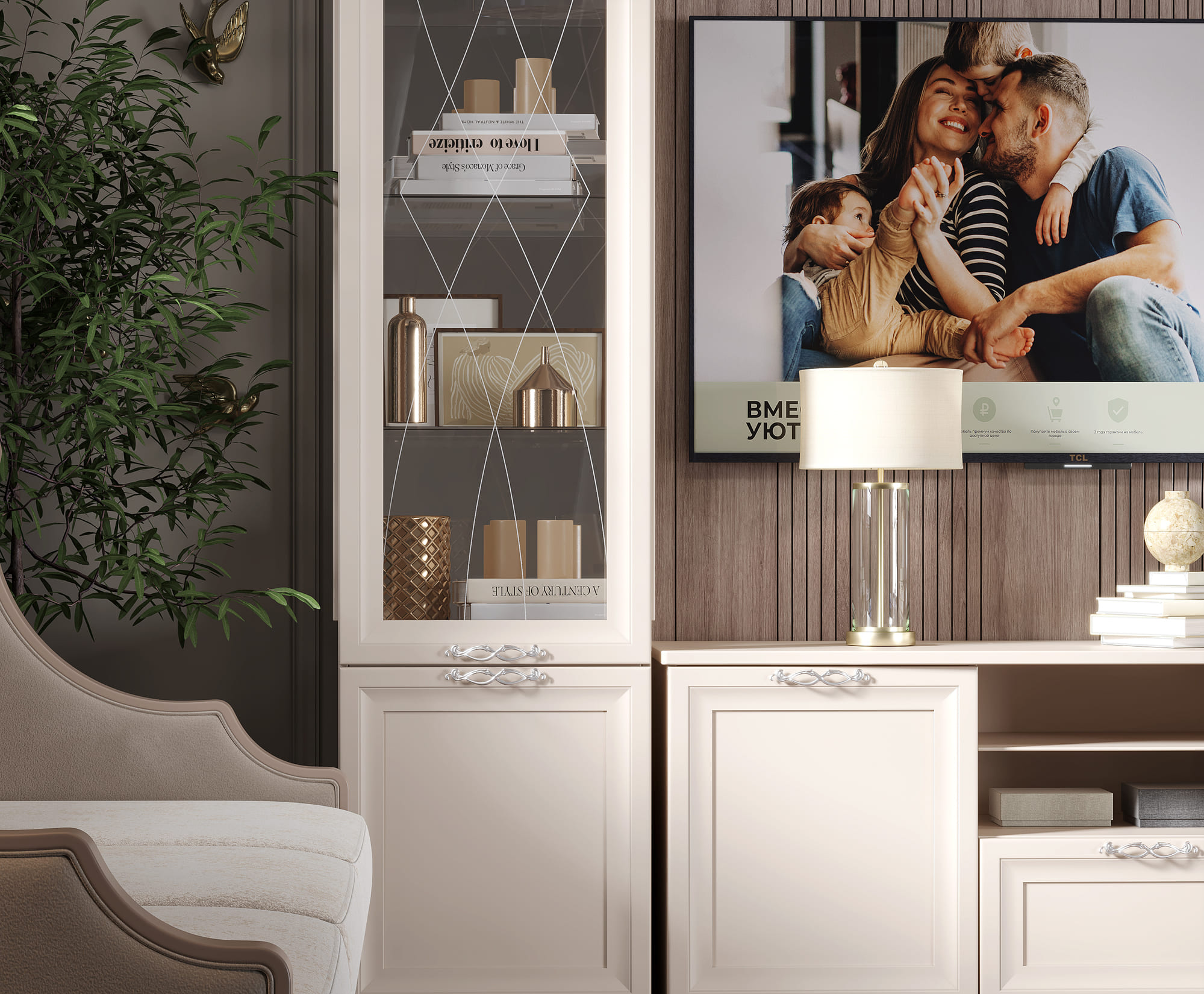 Гостиная «Адель» — это сочетание современных форм с классическими акцентами, создающие идеальный баланс между функциональностью и эстетикой.