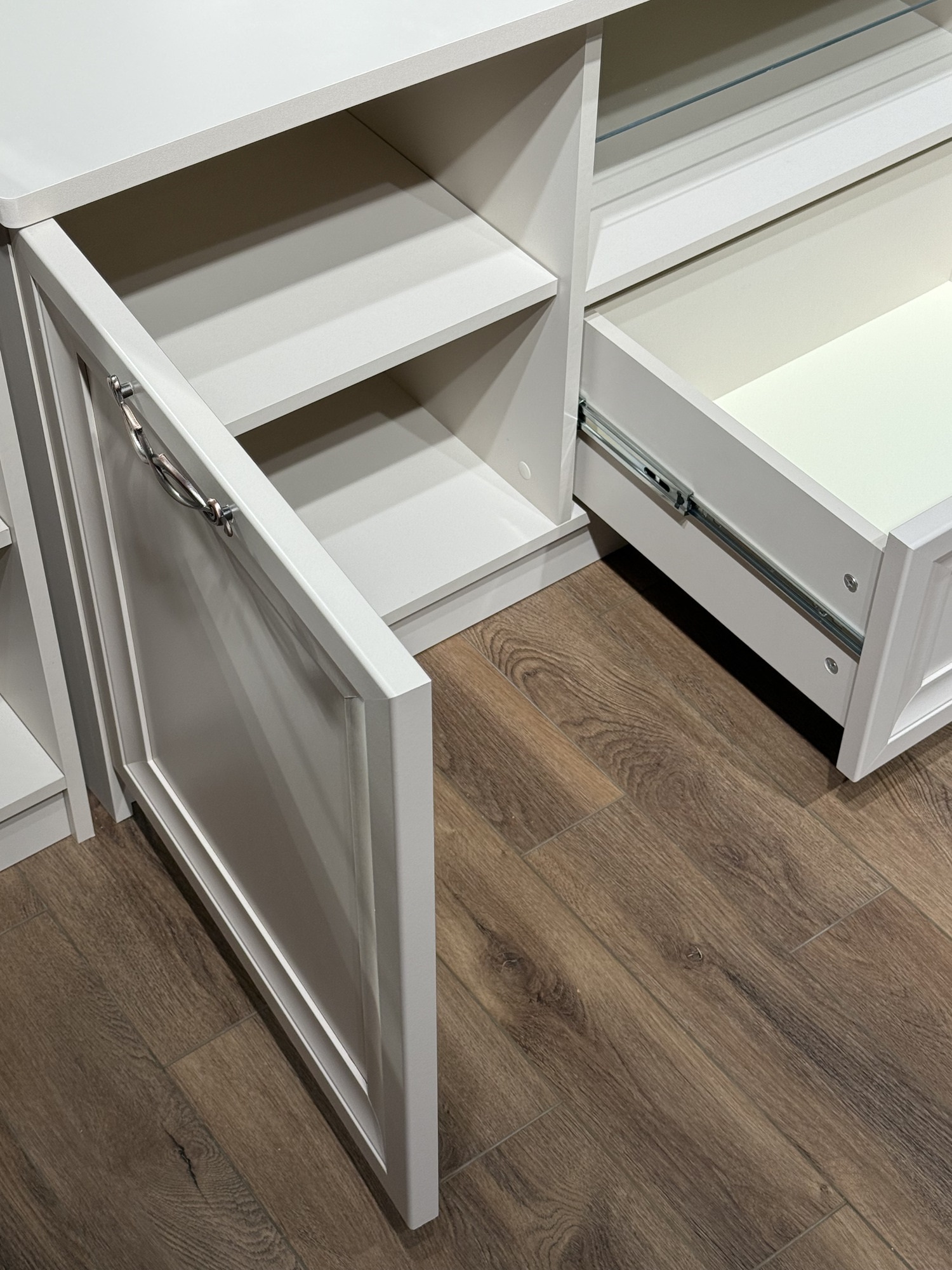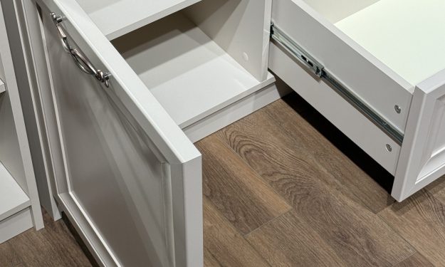 Дверные петли с доводящим механизмом. Выдвижные ящики оснащены шариковым выдвижным механизмом.